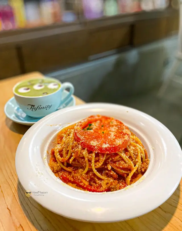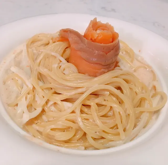 無意之中喺旺角鬧市街頭搵到哩間Cafe shop鋪面細細,無乜客人,岩曬需要寧靜既我們傾下計👭-忌廉明太子三文魚意粉呢個意粉真係好好味!