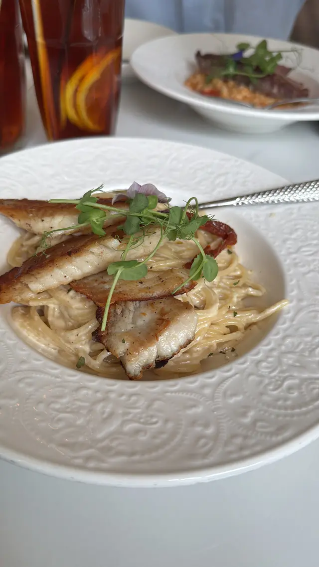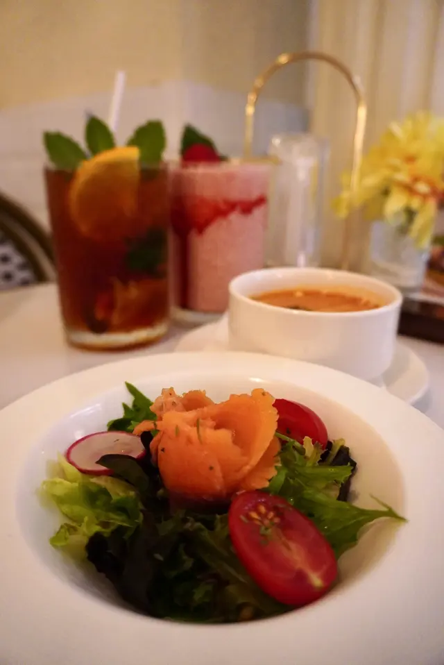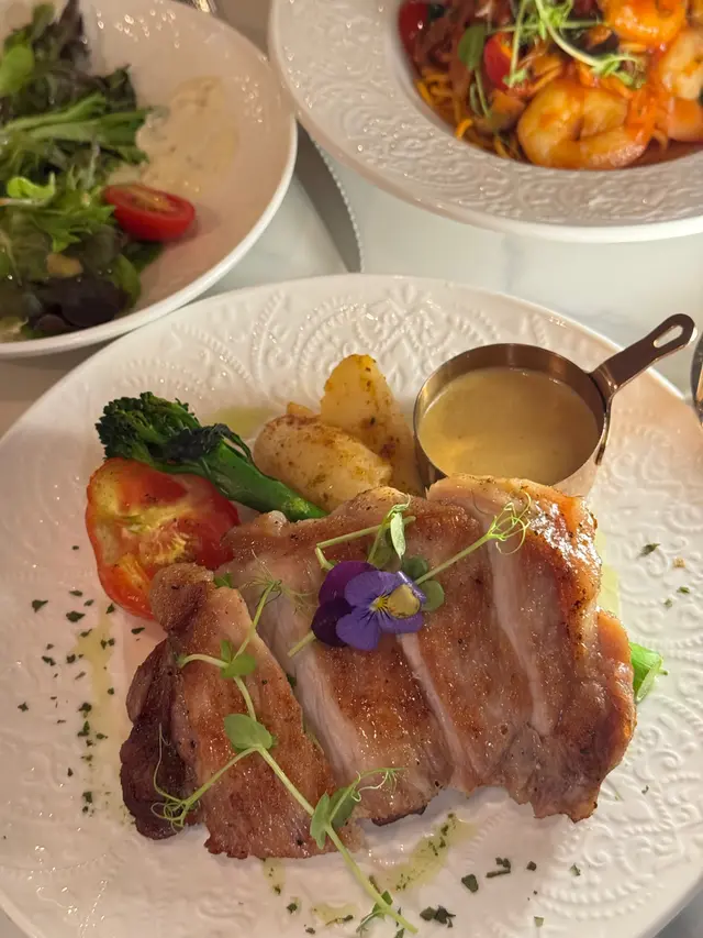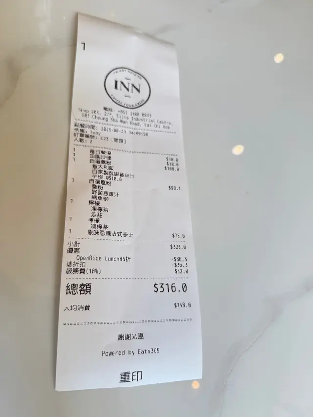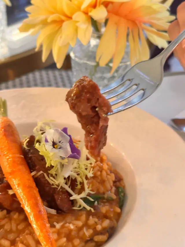 INN呢間餐廳已經唔係第一次嚟😍去開荔枝角做嘢,梗係要再食啦!發現餐廳多咗其他款式嘅食物同飲品!餐廳裝飾依然好典雅,坐得舒服!▫️ 慢煮八爪魚香橙西柚茴香沙律八爪魚經低溫慢煮,口感好嫩滑帶點爽口,完全冇咬唔開嘅問題!香橙同西柚帶出果香酸甜,唔單止醒胃,仲巧妙地中和咗海鮮嘅鹹鮮味,沙律整體味道層次分明,唔會單調,好適合作為開胃前菜!▫️ 法式紅酒和牛面肉意大利飯和牛面肉經長時間以紅酒慢煮,肉質極致軟腍,幾乎用叉輕輕一撥就散開,滲透住濃郁酒香與牛脂香氣,入口即化。配搭選用高湯慢慢熬煮嘅意大利飯,吸收咗牛肉醬汁嘅精華,每一啖都好滋味!▫️熱情果芒果酸奶昔飲品酸甜平衡得宜,入口即感受到熱情果嘅果香,緊接而嚟係芒果嘅濃郁甜味,兩者交織出一種熱帶陽光口味。酸奶為整體添上滑順口感與微酸層次,令味道更見清新,唔會過膩。羽衣甘藍牛油果酸奶昔羽衣甘藍帶有微微草本苦香,經攪拌後口感順滑,唔會有纖維感,牛油果則加入綿密質感與天然油脂,酸奶嘅酸度恰到好處,中和咗蔬菜嘅青澀,同時提升咗整體清新感,適合配搭作為餐後解膩之選!▫️ 海鹽開心果美式咖啡美式咖啡本身香濃微苦,係一種純粹嘅咖啡體驗,加入開心果醬後,即時添上堅果香氣與絲滑口感,令整體味道更圓潤,而海鹽嘅點綴唔止係味道上嘅平衡,更係層次上嘅提升,因為微鹹令甜味更突出,同時令咖啡回甘更明顯,好好飲!大推!▫️ 香蕉焦糖法式多士配雪糕法式多士外脆內軟,蛋香濃郁,焦糖香蕉香甜黏口,帶有微微焦香,完美地提升整體層次。配上香草雪糕,冷熱交融,口感豐富,真係令人一啖接一啖停唔到口!為今餐作完美嘅句號🥰!…查看更多