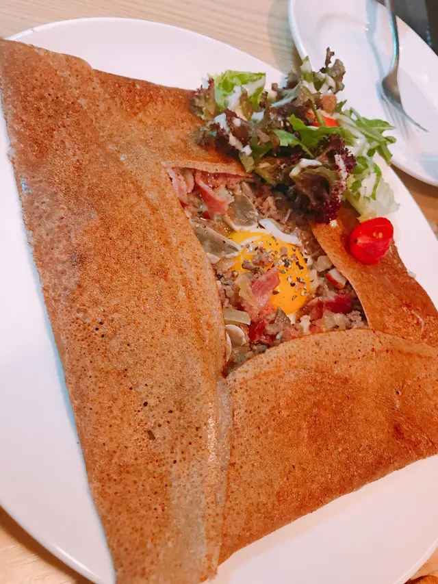 Weekend 無野做就諗住同朋友搵間餐廳坐底hea下傾下謁~☺️見到eatigo 呢間有折,地點又okay我地就book咗呢間啦!店面地方唔大但都叫坐得舒服,朋友仔想靜啲傾下謁所以我地坐入少少,如果唔係坐窗中睇住條街食crepe 都幾chill~😝佢有正常甜既crepe外,仲有咸既crepe。😯我地最後叫咗一個咸(juicy beef)同一個甜(apple comfort)黎試下。呢個juicy beef有好香既免治牛,中間仲有一隻流心蛋。🍳食落去係有pizza既feel,佢既份量仲要幾大,兩個女仔食都飽飽地。😂不過佢個菜可以有進步。🧐而呢個apple comfort 有驚喜!😍 當Caramel ice cream 加上crepe 已經係perfect match。佢仲有糖煮蘋果,誠意十足好味!👍🏼👍🏼…查看更多