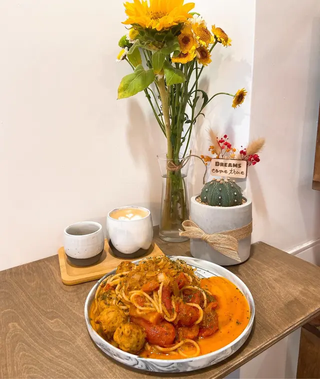本身對呢間cafe有啲期待就算嘢食唔好食嘢飲或者咖啡都應該可以點知兩樣嘢都一般般啱啱好合格位置唔多間嘢都幾細所以同其他人都坐得幾近吓唔算舒服All day breakfast 🪵酸辣冬蔭功海鮮意粉 🪵凍朱古力咖啡 🪵 凍美式咖啡 🪵全日早餐份量唔算多亦冇乜特別係個炒蛋似有2-3隻同埋牛油果幾新鮮個冬蔭功意粉有啲乾同淡海鮮只係得兩隻青口同一隻蝦而且意粉係略嫌有少少硬過頭至於咖啡係正常一般味道都幾細杯我嘅期望係會有返啲小店cafe嘅正常發揮整體感覺係普通之餘仲有啲唔合格對我嚟講就可一不可再啦😮💨…查看更多