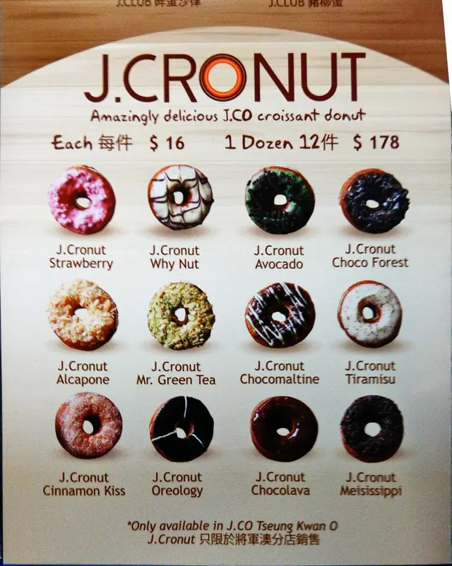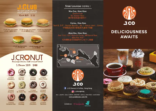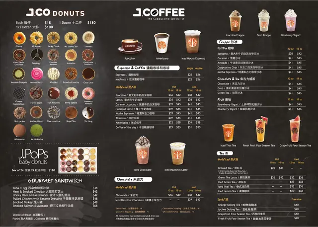 J.Co Donuts & Coffee (湾仔) 网址: https://s.openrice.com/QrLS0pyo3W0 地址: 香港灣仔軒尼詩道55號地下1及2號舖 电话: +852 69828282