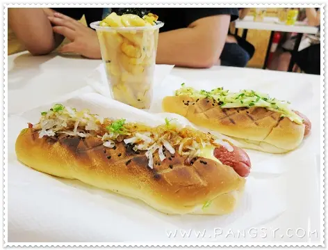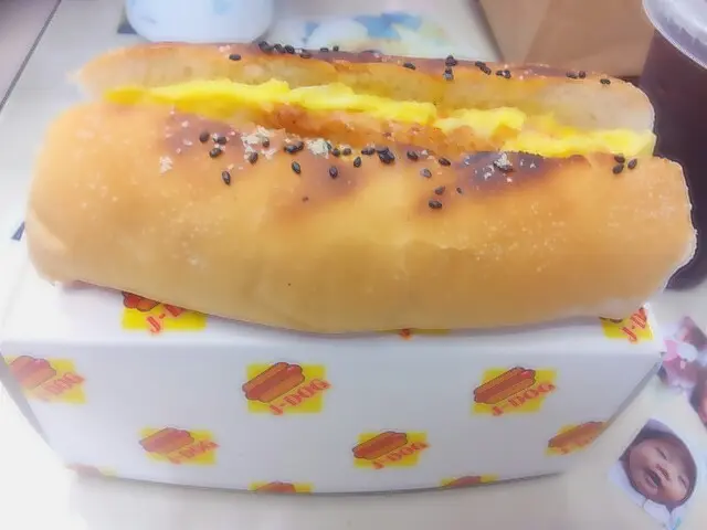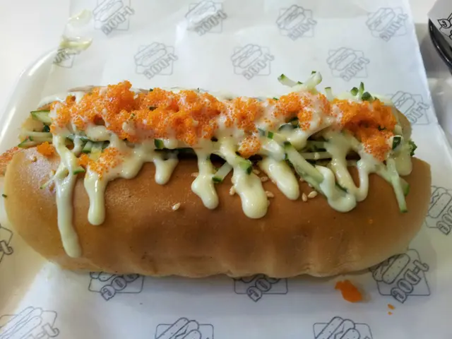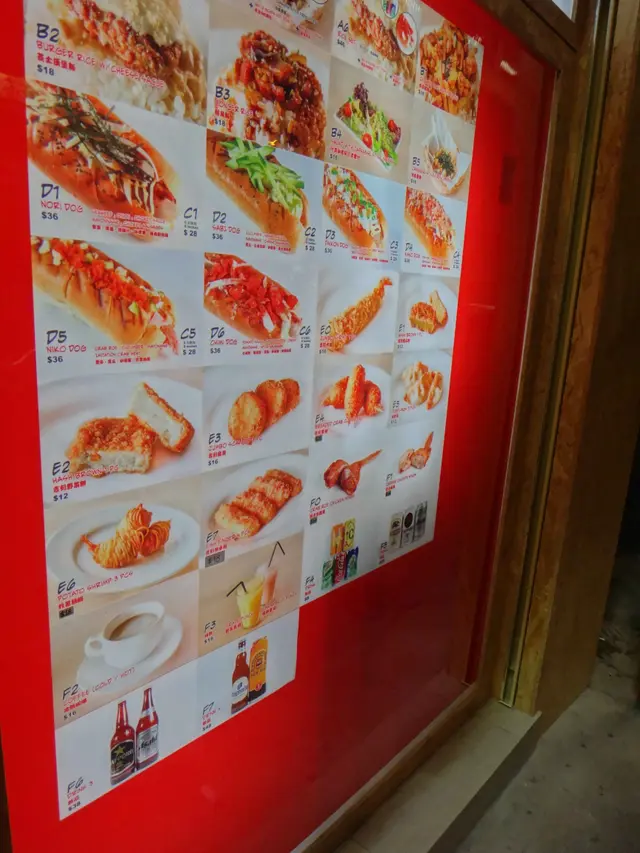 走著走著,無意之中發現一間叫《J-Dog》的熱狗店,於是走了進去。店子的裝潢是一貫街坊式的快餐店風。熱狗的款式頗多,且蠻特別的。還可選擇六吋或九吋長的熱狗包。最後要了薯條餐($42,跟六吋熱狗)及九吋熱狗餐($36,跟汽水),一大一小,相映成趣。Daikon Dog(九吋),夾著的是牛肉熱狗腸、白蘿蔔、青蔥、燒肉汁及沙律醬,他說挺好吃。Sabi Dog(六吋),這個則是芝士熱狗腸、青瓜、日本芥辣及沙律醬,青瓜的份量多得滿溢,感覺健康又清新,烤烘過的熱狗包鬆軟香口,芝士熱狗腸又夠juicy,日本芥辣微辣而不嗆鼻,整體表現讚讚讚。薯條屬現點現炸,面層還灑上芝士及紫菜絲,惜吃來偏稔身,表現比熱狗略遜。 兩口子覺得店子的熱狗質素及定價比連鎖式熱狗店好而便宜,甚至比之前吃過的熱狗小店更好,果真是誤打誤撞之下的驚喜!…查看更多