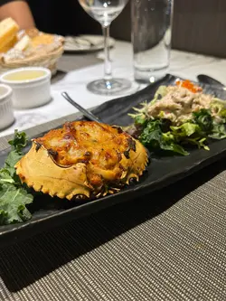 呢间楼上西餐厅,样样嘢都大大件🫨 每人仲可以拣三至五道菜,男士们都会食得饱🙂↕️!(我哋拣咗五道菜,饱到上心口🤣)❝ 焗酿蟹盖拼松叶蟹沙律