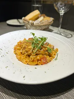 龙虾汤浓香扑鼻,干邑酒香增添高雅层次,入口滑顺浓郁的🍤❝ 黑松露海鲈鱼粉红汁烩通粉