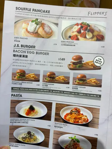 位于九龙塘又一城底层的I.T服装店内的J.S. Foodies,结合时尚与餐饮空间,是附近上班族的午餐之选,也是九龙塘区的家长和学生放学后的下午茶之选。这次我独自前往,在午市时段品尝了Lunch set的「温泉蛋烟三文鱼菠菜忌廉意粉」($139包饮品),留下了深刻印象。当服务生端上意粉时,温泉蛋稳坐于意粉中央,用叉子轻轻弄穿温泉蛋,蛋汁如熔岩般流淌而下;将蛋汁与意粉彻底拌匀后,每条面条都裹上了浓郁的蛋香和忌廉奶香,口感丰腴,却奇迹般地不觉得太腻口。烟三文鱼的咸香与菠菜的清爽恰好平衡了忌廉的厚重,而意粉煮得恰到好处,弹牙可口!虽然意粉的份量十足,但它的美味让我不知不觉就清空了整盘。相比之下,跟餐的Lemonade则表现平平,没有特别令人惊喜之处。回想起较早前我和同事一同造访,我们单点了「法式焦糖班戟」($149)和「明太子酱北海道三文鱼籽意粉」($158)。明太子意粉表现出色——浓稠creamy的明太子酱与忌廉完美融合,加上份量慷慨的三文鱼籽,在口中咬破时所迸发的鲜味令人满足。唯一美中不足的是明太子忌廉汁的份量有点太多(你可以跟上图的烟三文鱼意粉比较一下),吃到后期稍嫌有点腻口。因为J.S. Foodie主打薄身的美式班戟,所以我和同事点了menu主图的「法式焦糖班戟」,味道不过不失。它采用日本国产面粉及鸡蛋制成,摆盘精美,搭配了士多啤梨、香蕉和蓝莓,色彩缤纷,视觉效果满分;但口感却未如餐牌所述的「外脆内软」。下次再来,我会选来自他们同集团Flipper’s的「奇迹的梳乎厘班戟」,相信应该会更为松软、吸引!