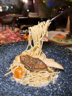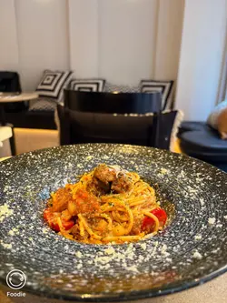 。意式火腿芝士拼盘,呢个拼盘配料好丰富,有两款火腿片,腌制青瓜,橄榄,芝士等。火腿片咸香适中,油脂分布均匀,入口即化。芝士味道浓郁又唔会太抢,配埋旁边嘅腌制青瓜同橄榄,咸酸交错,层次感爆棚,用来送酒或者作为前菜都一流