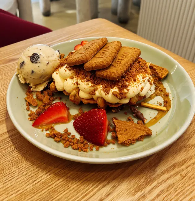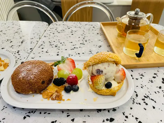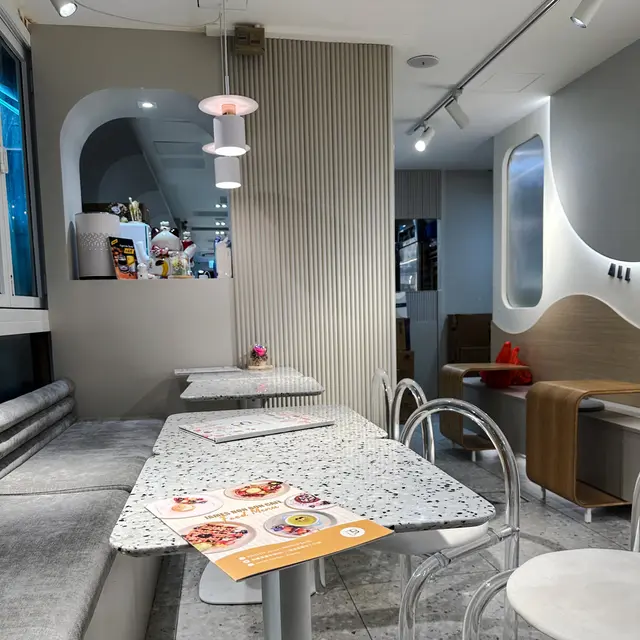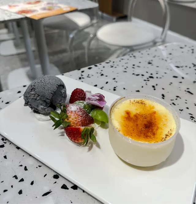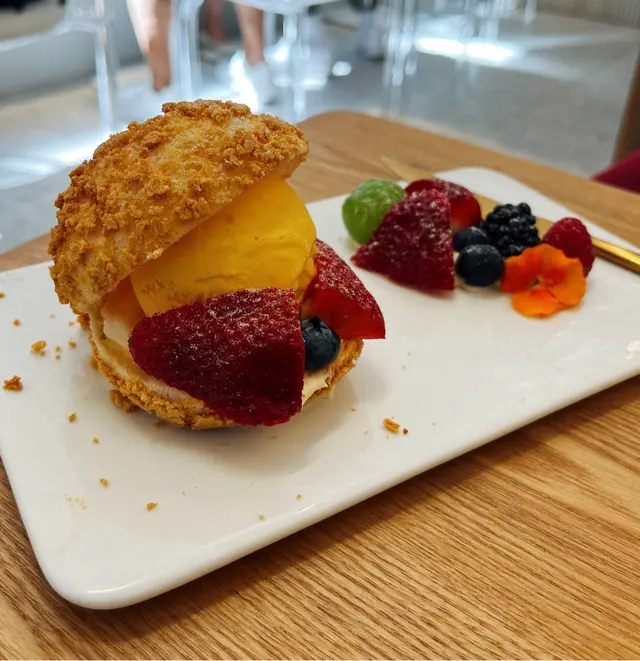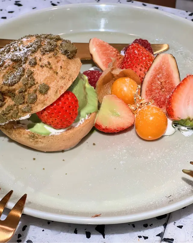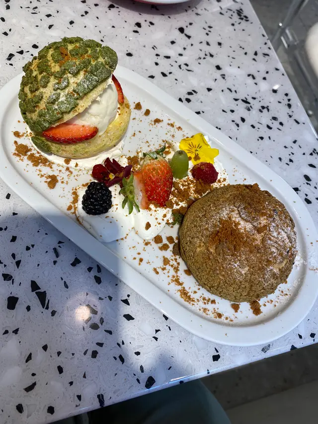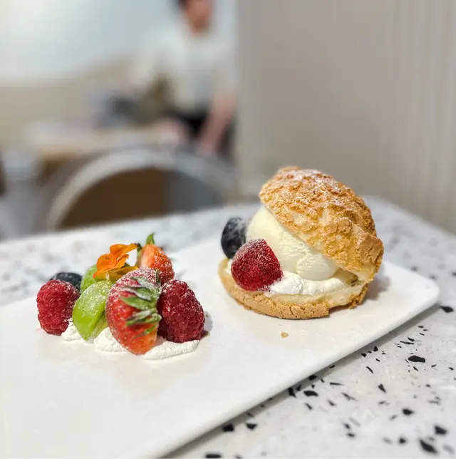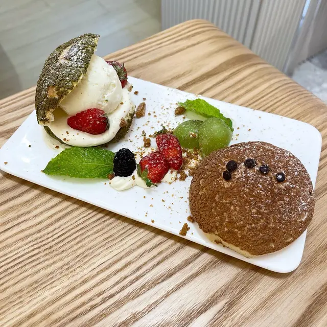見電視介紹呢間cafe, 特登買完麻薯去試下。入到去好奇怪,同員工講2位但冇人知我地講野,原來佢間鋪前半截係做蛋糕面包,後半截有幾張台但放晒d貨,之後員工執返好d野俾我地坐,餐牌都唔知幾世無拎過出黎,差d搵唔到。因為員工都集中做整面包,無人招呼的叫野食要行返出去,老細bon坐係隔離都無理我地。野食方面中規中矩,一共好似$100定$89。叫左2粒麻薯加雪糕和一杯咖啡。主角麻薯一般般,熱辣辣的但好實同硬,旁邊的水果就幾好食😂…查看更多