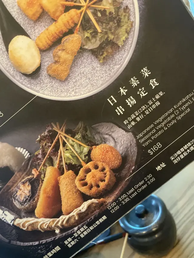Jan Jan系日本过江龙嘅串扬店。中午定食唔单止有串扬定食,仲有唔少其他定食。店内装修同门口摆设都有置身系日本居酒屋嘅感觉。menu食材唔透明,记得以前会写明系咩食材,但衣家感觉似omakase,基本上只知有肉有海鲜,具体什么就唔知,价钱连加一大约$200一set,系湾仔算唔平,餐厅入面唔系好多客,适合慢慢叹下倾下偈,店员出餐时亦会介绍下各种串扬食法,配什么酱汁,十分细心。特选串扬定食$178(海胆炸猪串,年糕,茄子,菇,鸡,牛,饭团)所有炸串都系即叫即炸,皮脆又热,粉唔会太厚又都没离壳,炸得好出色。每个set都跟有椰菜同甜酱油,感觉正宗,桌左亦有盐,辣粉/酱,自由配搭。海胆鲜甜黏口,入口有浓郁香味,海胆隔离有少少wasabi,一齐食带出海胆味道。每款肉类串烧都会食本身肉味,牛太熟成落较韧,鸡猪都系免治肉,唔会太干。真正惊艳嘅系茄子同菇,菇味道完美保留,茄子更加升华左,入口即融,草青味全无,唔系平时食到嘅口感。年糕外表脆,内里烟韧,配上甜酱,口感味道都几好。饭团米黐糯,入面有渍过嘅昆布,咸咸地几好味。海鲜串扬定食$188(蚝,黑松露带子,海老,鱼,三文鱼)各款海鲜都自带本身嘅味道,黑松露带子十分厚切,外表炸完但入面亦保持刺身质感。蚝唔会缩哂水,外层粉脆入面就啖啖蚝味,不俗。三文鱼大旧但比较干身,其他都是正常发挥。追加$29烧牛肉串+炸富士萍果串扬店就唔好嗌非串扬类嘅野,烧牛肉比较普通。职员好细心,见我地食到差唔多先上炸富士萍果,刚上碟时咬开萍果还在冒烟,表面加左肉桂,萍果甜,熟左唔系咁爽口,感觉都几特别。…查看更多
