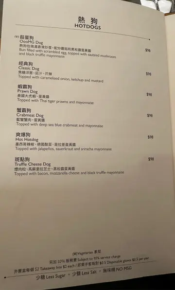 蟹霸狗$98~用蓝蟹肉及蛋黄酱配肠仔,在平淡的一只热狗加添一份特色。