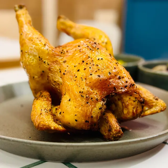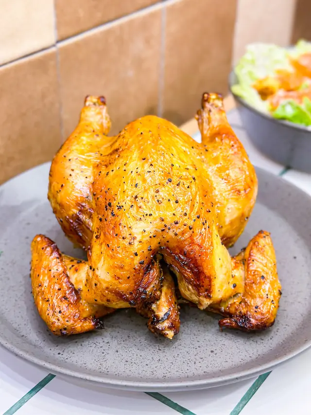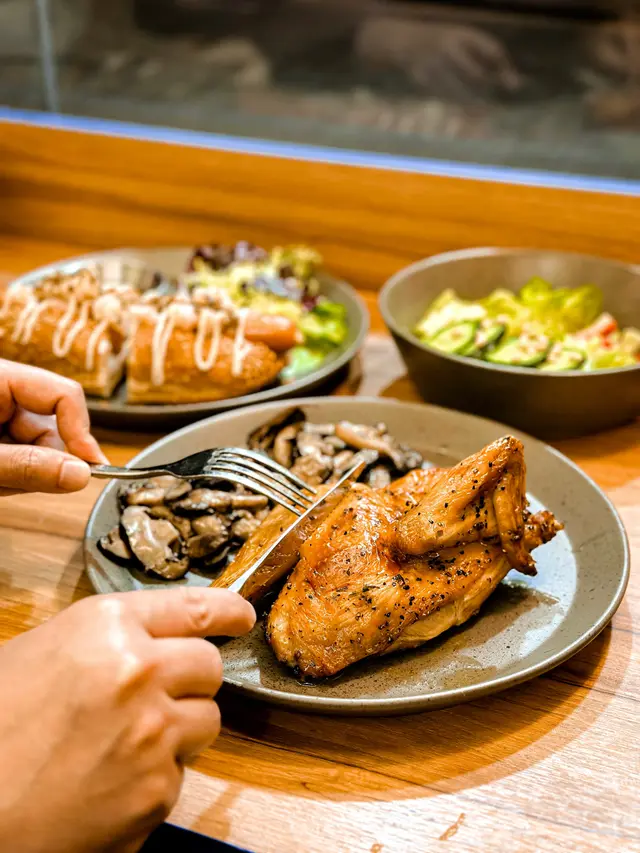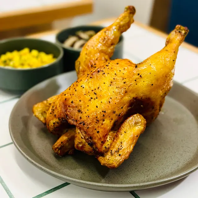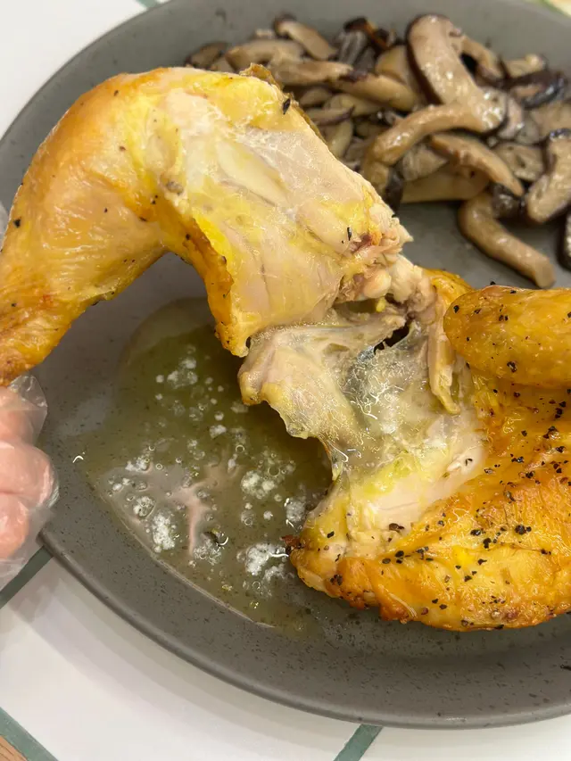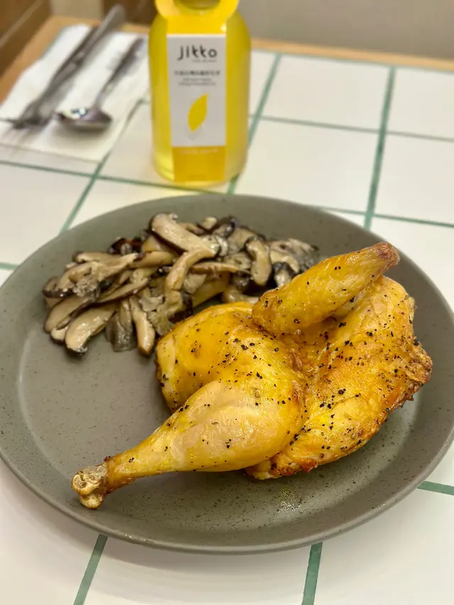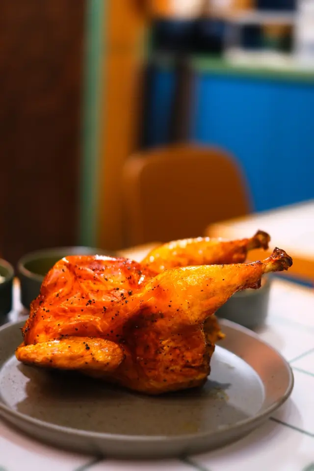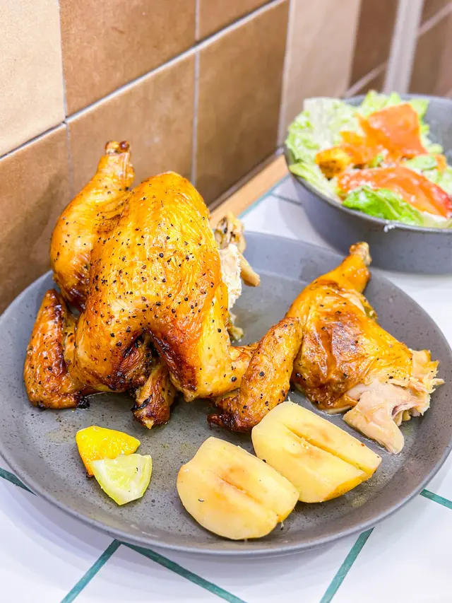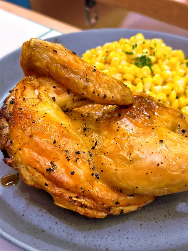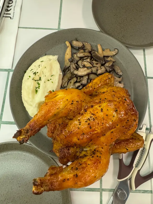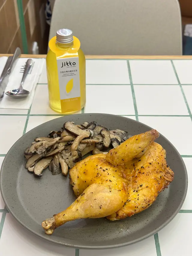 🐥半隻燒雞餐 (lunch set) $156 (未計加一服務費)套餐包前菜或者餐湯及飲品 我就揀咗餐湯 當日係南瓜湯 好飲 係淡淡的南瓜味 半隻燒雞再配一個Side 我揀咗烤蘑菇 因為比較少見有得揀蘑菇做side 份量都唔少的 味道都不錯係正常發揮啊 飲品都有不同嘅茶飲選擇 枝冷泡茶仲要係玻璃樽 有啲重本而主角燒雞的確烤得好嫩滑 入面嘅肉汁都滿滿 不過飲完個湯等咗差唔多半個鐘個雞先上碟 對返工人士嚟講就唔太友好了 同埋食完都無個種覺得要再encore嘅感覺😳…查看更多