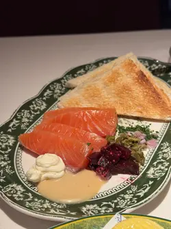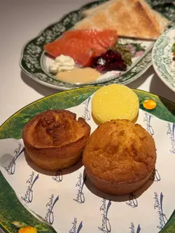 餐厅于1924年创立于上海,1928年迁至香港,是香港最具历史的西餐厅之一,承载着近一个世纪的饮食文化与回忆。这家曾招待过球王比利、李小龙等国际巨星的经典餐厅,在2020年结业时引来全城唏嘘。时隔四年,它终于在2024年强势回归,选址中环毕打行,距离旧址剧院里仅咫尺之遥,现在以更具规模、更现代的面貌重新开业。新店不仅保留了传统的欧陆风味,更注入当代设计元素,由资深行政总厨Russell Doctrove主理,延续经典的同时谱写新篇章,让老顾客重温旧梦,也让新一代体验这传奇餐厅的独特魅力。首次到来重新开业的Jimmy's Kitchen,试了二人下午茶$478,每日下午3时至5时供应,相比价格愈来愈进取的酒店下午茶,这价格相当具竞争力。Jimmy’s Kitchen 的下午茶套餐完美融合经典与创意。咸点中的「鸭肉酱雪茄卷」外脆内软,鸭油香与幼滑鸭肝酱非常匹配;「约克郡布丁配烤牛肉」是向英式传统致敬,牛肉嫩滑,辣根酱清新不腻。甜品方面,「热情果挞」酸甜清爽,意大利蛋白霜轻盈细致;「苹果金宝」带淡淡酒香,口感酥脆湿润兼备。压轴的自家制英式松饼牛油香浓,配clotted cream与草莓酱,简单却满足。整体卖相精致,味道平衡,加上怀旧优雅的环境,是中环闹市中一处值得慢尝细味的下午茶选择。…查看更多
