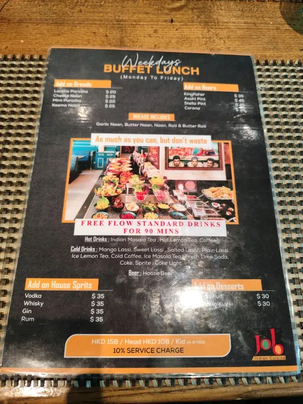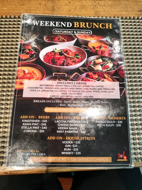 Jo Jo Indian Cuisine (湾仔) 网上订位享低至75折优惠并赚Rice Dollars 网址: https://s.openrice.com/QrLS0Npe000 地址: 香港灣仔駱克道37-39號得利樓2樓 电话: +852 25273776