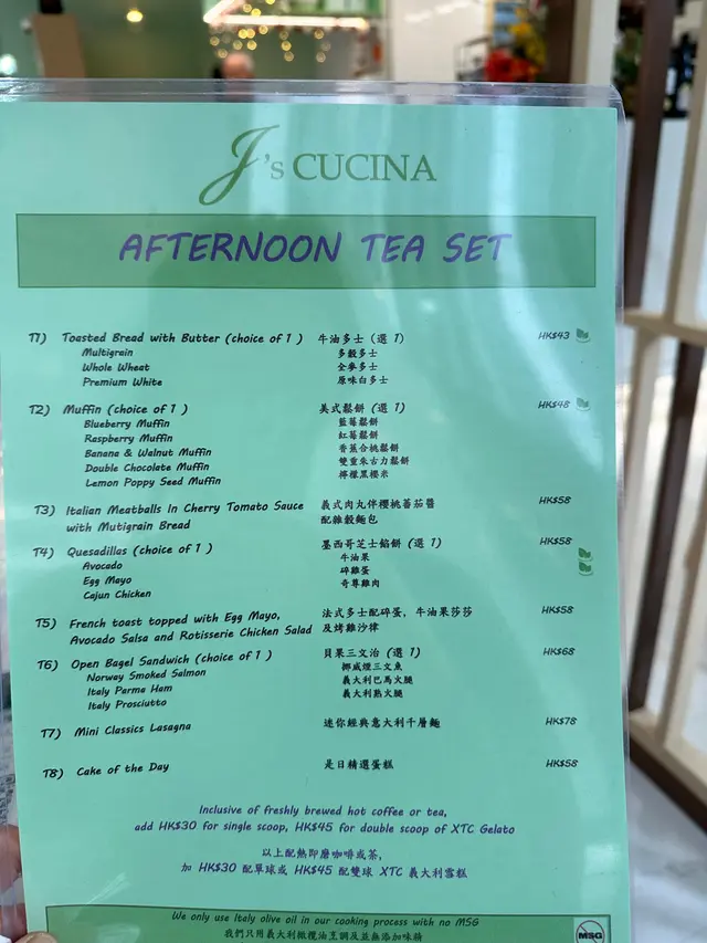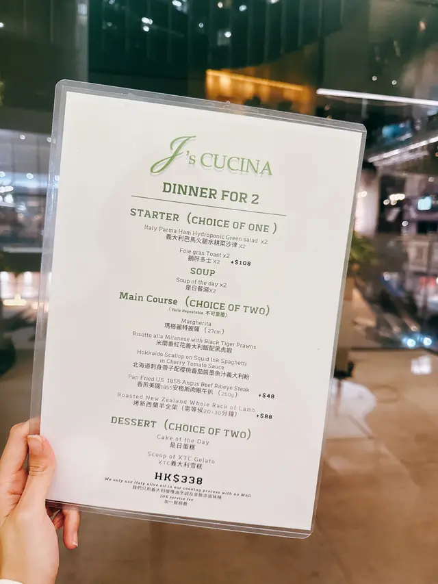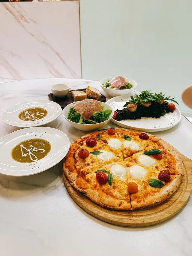 今日去左打卡熱點到食飯,就係荔枝角新地標內嘅一間精緻日光 Cafe。Cafe以蘋果綠色作主調,,樓底更有 5 米高,採光好,超適合打卡。食物高質性價比高,主打無添加味精仲用左意大利進口嘅手工 Pasta,餐廳提供多種選擇,有自選 All Day Breakfast 、Gelato,特飲、意大利紅酒,應有盡有。.我哋就叫左個二人晚市套餐 $388沙律2款+餐湯2款+自選2主菜+2甜品 超抵食!.🥗沙律-義大利巴馬火腿水耕菜沙律鹹香嘅Parma Ham配新鮮沙律菜,清爽又開胃.🥣餐湯-🥦西蘭花忌廉湯口感滑順,好creamy,味道濃郁.🍽️主菜-🍝北海道帶子刺身,配櫻桃蕃茄醬墨魚汁意大利粉-🍕瑪格麗特披薩 27cm 帶子鮮甜,意粉軟硬度適中好掛汁,配上濃郁墨魚汁同番茄醬汁,好開胃瑪格麗特披薩,薄底香脆配埋拉絲水牛芝士,簡單又好食.🍰甜品-🍨香蕉Gelato-Crème BrûléeGelato好濃郁香蕉味,好好食!焦糖燉蛋面頭既糖燒得脆口配搭濃濃蛋味嘅燉蛋,外脆內嫩雙重滋味~…查看更多
