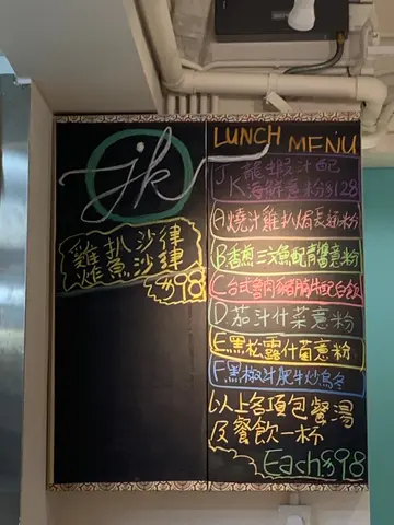 Jk kitchen 位于上环区中央大厦一楼,感觉自成一角,lunch 吾想同人迫,这里有难得的空间感,此刻无价!这里装修新净,以开放式厨房和客人拉近距离,难得没有油烟感。午餐有A- E 套餐午餐价钱由$58-$88 包饮品一杯,取价中等。我的午餐「厚切猪扒、长通粉配罗宋汤」$88我一落单就见到厨房员工在炮制,即时加分。数分钟后午餐已经上枱,一大碗「长通粉配罗宋汤」汤底有薯仔、红萝卜、洋葱、牛脷、西芹、蕃茄等,汤底够香甜、热度足,长通粉弹牙同时吸收了罗宋汤的精华,吃起来更滋味。至于「厚煎猪扒」质感....大大杯 Cappuccino 先可以满足到我这个咖啡精。奶泡比较对板,且十分丰盈、口感棉密。咖啡浓郁而果酸不高,口味较大众化。…查看更多