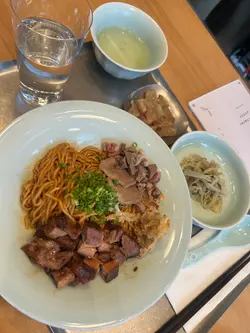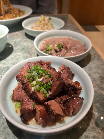 珍姐海鲜火锅的姊妹店 Jus,主打三款精致拌面,专注把各种牛肉精华,包括牛油和牛肉汤融入其中。招牌 牛油拌面 以牛油和酱油为主要调味,香气十足,铺上满满的牛肉杂锦,包括炙烧牛叉烧、软腍牛舌和凉拌牛筋,将粉面档捞粗概念提升至豪华享受。店内担担面提供荤食和素食口味,个人更爱 椎茸担担面,将椎茸切碎后混合麻酱和花椒,酱汁浓郁麻香惹味。吃到一半可以将附上的清汤加入拌面,香气更上一层楼,风味更佳。Jus, the sister restaurant of Big JJ Seafood Hotpot, specializes in refined mixed noodles. Their signature Noodles Mixed with Beef Fat and Soy Sauce is topped with a mix of seared beef char siu, tender beef tongue and chilled beef tendon, elevating the noodles experience. They also offer meat and vegetarian dandan noodles. The Mushroom Dandan Noodles are rich and savory, mixed with a spicy sesame and Sichuan peppercorn sauce. You can add the broth to your noodles to enhance the flavor, giving a unique and delicious dining experience.…查看更多