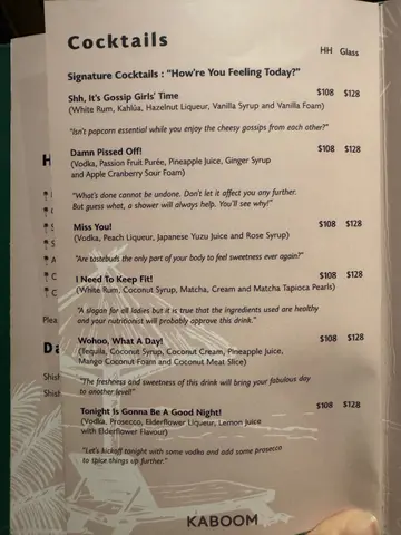 靓到离晒谱嘅泰式fusion菜KABOOM 餐厅装修充满泰式风情,好似去咗一趟度假咁🥰仲见到好靓嘅维港景色!除咗有室内用餐位置,仲有天台室外,环境非常Chill😆好啱同朋友饮返杯😍🍸 CocktailDamn Pissed Off拣咗两杯造型好可爱cocktail 有vodka, 系姜味菠萝汁, 酸酸地好开胃😀浴缸造型,仲有只小鸭相伴🦆 Miss You!有玫瑰味道嘅果汁,呢款甜甜哋,好sweet ! 仲要系雀仔造型,非常别致可爱前菜Thai Style Beef Tartare with Bone Marrow和牛Tartare肉质嫩滑新鲜,配埋泰式调味汁, 口感丰富 Red Prawn and Scallop Carpaccio非常精致美味的Appetizer !红虾的鲜甜搭配带子的口感,再加上奶油酱的浓郁,确实是绝配,仲展现到食材的新鲜😋Baked Sambal Sous Vide Black Cod Fish黑鳕鱼的肉质鲜嫩,皮脆肉嫩,再搭配上辛辣而香浓的参巴酱,确实会令人回味无穷。 Tom Yum Hokkaido Scallops and sea urchin with Risotto好有诚意,Scallops 好大粒好fresh ! Sea urchin 份量都唔少😃仲要非常鲜甜😆仲要配埋冬阴公味道嘅Risotto, 好特别好过瘾👍…查看更多
