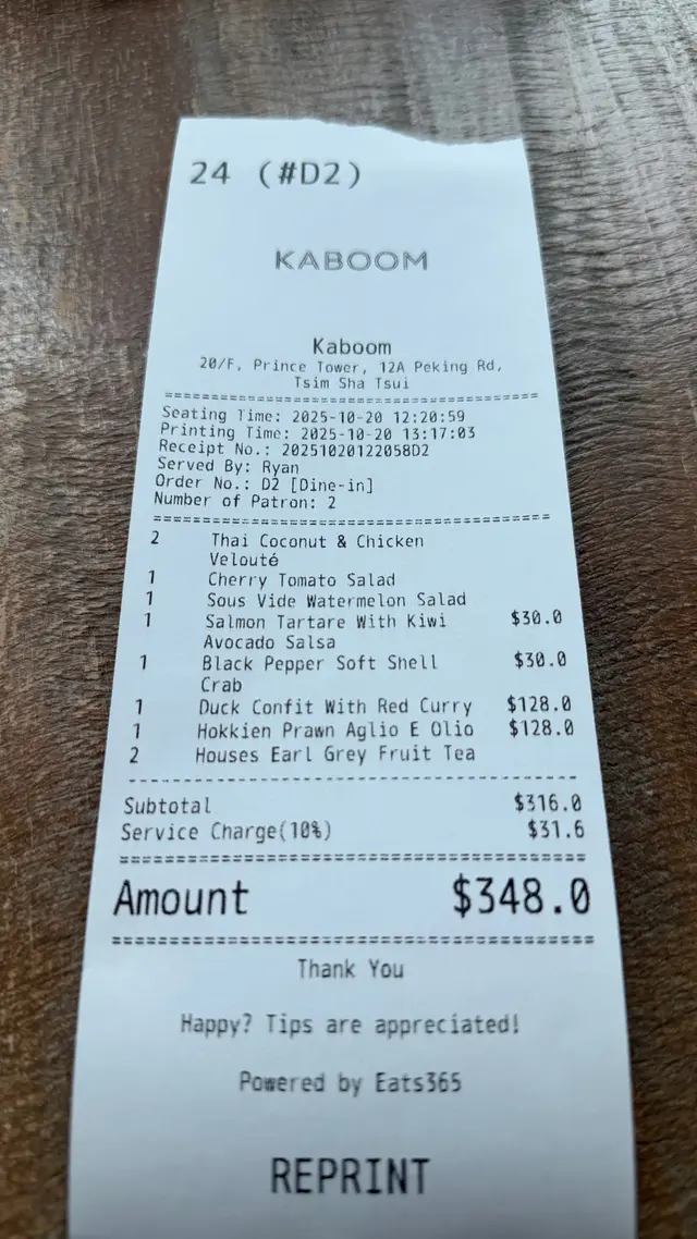 KABOOM (尖沙咀) 网上订位即赚Rice Dollars 网址: https://s.openrice.com/QrLS0reqB00 地址: 香港尖沙咀北京道12A號太子集團中心20樓 电话: +852 37088114