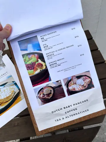 【2024 年 3 月】终于有时间去西贡食 bookmark 咗好耐 Dutch Baby Pancake ~~cafe 店面不太,平日中午都几旺好彩刚好有两个靠窗位置,唔使等位日系木调装潢,加上靠窗位有日光透入感觉舒适写意 ~~儍妈点咗份招牌 Dutch Baby Pancake。无花果 Dutch Baby Pancake HK$72 班戟以铸铁锅上枱,卖相吸引热烘烘班戟外边焦香酥脆,中间柔韧绵软,充满蛋香配上无花果和蜜糖,甜度刚刚好,仲有核桃增加口感但是建议 +HK$22 配多一球雪糕可以拣云呢嗱 / 豆腐,儍妈就拣咗豆香满满嘅豆腐雪糕一冻一热,冰火交融嘅口感,超满足 ~~儍爸。香葱鸭南蛮荞麦面 HK$98鸭肉鲜嫩油脂丰富汤汁香浓清甜带有鸭油香气里面仲有香菇和京葱,搭配荞麦面味道清爽不腻口 儍爸。Iced Latte HK$42儍妈。Flat White HK$38** 以上分享是以我的口味、体质和情况作出分享及感受,一试 / 合用与否请自行决定…查看更多