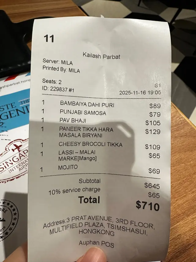 Kailash Parbat (尖沙咀) 网上订位享低至85折优惠并赚Rice Dollars 网址: https://s.openrice.com/QrLS0MBS800 地址: 香港尖沙咀寶勒巷3-7A號萬事昌廣場3樓302號舖 电话: +852 34285545