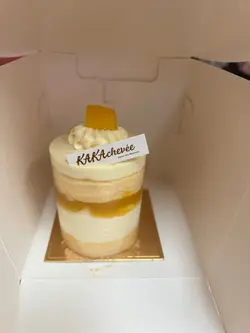 Bought cake from this cake shop to celebrate my colleague's bday. .We chose the Matcha Red Bean Mochi Chiffon Cake. Topped with red beans and a thick layer of matcha mousse, the chiffon cake was layered with mochi and red bean paste. The mousse was extremely smooth and creamy, pairing perfectly with the light chiffon cake, delightfully chewy mochi and red bean paste, creating a complex combination to enjoy. The matcha was not too bitter but still had an intense matcha aroma, and the sweetness was just right. I was deeply impressed by this cake. .An additional HKD15 is required for the chocolate plate for bday message. …查看更多