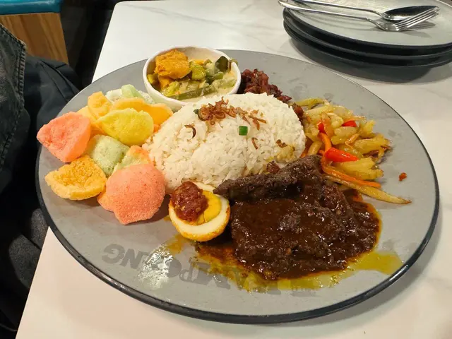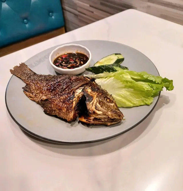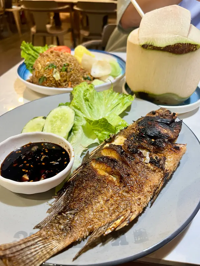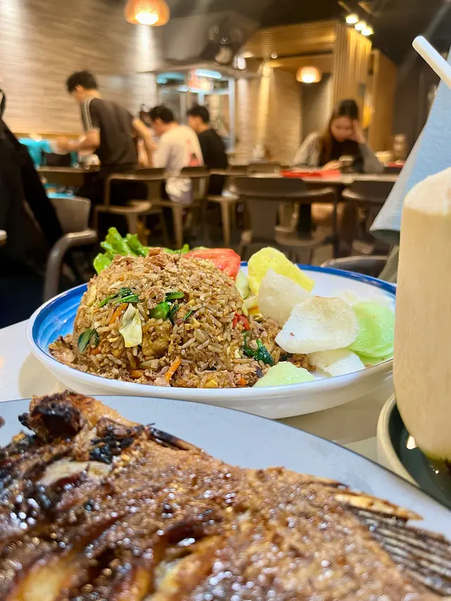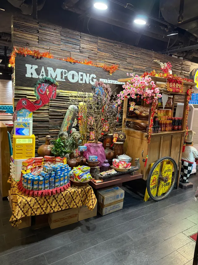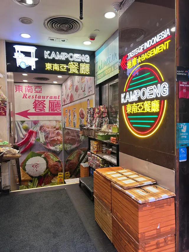 呢日好想食印尼野,所以放工同朋友衝咗去銅鑼灣,試咗同事成日推介嘅「Kampoeng」。。門口已經有陣濃濃印尼味:霓虹招牌+樓梯口堆滿土產零食,好似轉眼跌咗去雅加達地庫市集。入到去,七成客人講緊印尼語,背景播住懷舊歌,成間舖氣氛夠地道。。坐低掃 QR Code 落單,好快就有嘢食上枱。首先到場嘅係炸熟辣醬鴨($70)。鴨皮炸到金黃薄脆,啖啖肉仍然有油香,但唔覺膩,配埋生菜青瓜同招牌紅 sambal,辣勁慢慢滲,越食越過癮。。之後兩條魚登場——我揀咗熟辣醬炸鰂魚($83)+斑蘭飯(+$18),朋友就試印尼醬燒魚($88)+椰汁飯(+$18)。炸版外層超香脆,魚肉仍然保持嫩滑;斑蘭飯透出淡淡椰香兼有少少甜,配炸魚啱啱好。醬燒魚就走咗脆路,抹上深色甜辣 Kecap Manis,再烤到魚皮焦香,咬落帶少少煙韌,甜鹹平衡。椰汁飯粒粒分明,椰香重啲,配甜醬夾埋真係一流。炸魚附送較稠嘅紅 sambal,辣度高少少,鍾意重口味可以盡情叉。。飲品方面,椰青($46)冰凍解渴,椰肉夠厚;另外點咗大樹菠蘿珍多冰($45),杯底滿佈 Jackfruit 同翠綠珍多,椰奶混合黑糖漿,甜香得嚟唔會死實,食完辣野飲返啖即刻降溫。。整體嚟講,呢間舖主打「家鄉味+抵食」。價錢喺銅鑼灣算親民,平均每人一百零蚊就食到又魚又鴨再加飲品。環境屬地庫小店,裝修見到藤燈籠、木雕、褲架馬頭,唔算打卡靚位,但勝在真。。門口土產區仲有一段小彩蛋:角落放滿巴達崗咖啡包、叻沙即食麵、辣味蝦片,仲有沙巴萊辣椒醬同檳城蝦膏,一樽樽排到成牆,行過已經聞到鹹香。同朋友夾份掃咗幾包,食完飯撐住肚都要即刻「手信先行」,真係有種旅行完準備返香港前最後大手掃貨嘅 feel。。#銅鑼灣 #銅鑼灣美食 #銅鑼灣打卡地點 #銅鑼灣餐廳 #香港美食 #旅遊推薦 #地區美食 #印尼菜 #開心聚餐 #香港探店 #香港好去處 #美食之旅 #香港平民美食 #朋友聚會 #香港美食必吃榜 #香港遊玩攻略 #香港打卡 #美食日常 #寶藏小店地圖 #必吃榜 #朋友生日飯 #Kampoeng …Read More