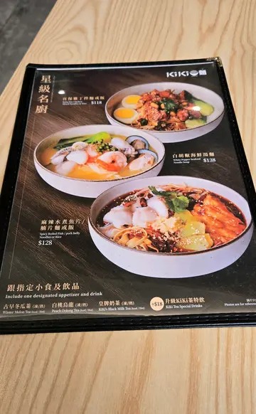KiKi Noodle 系我心目中「靓又有料」嘅台式面店代表。今次试咗麻油鸡面+小食盐酥鸡+冬瓜柠檬茶。麻油鸡汤底香气扑鼻,唔会过油,喝落有中药甘味,暖胃又滋润;鸡肉大块,肉嫩唔柴;面条系KiKi牌子,弹牙烟韧又唔会糊,完美吸晒汤汁。盐酥鸡皮脆肉嫩,冇雪味,蒜香浓郁,一食停唔到口。饮品方面,冬瓜茶有天然甜味,唔似坊间死甜,配柠檬仲有微酸提味,饮完好清爽。地方装修走简约木系风,好啱打卡,灯光柔和,影人又影食物都靓。人均约$120,性价比唔错,无论味觉定视觉都兼顾到!…查看更多