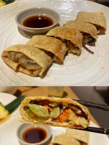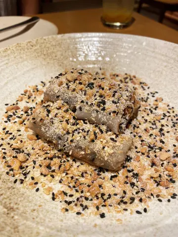 试咗二人前套餐,仲加点咗素鹅、甜点。清酒鸡,就是醉鸡既做法,加入清酒。酒香味浓,鸡肉吸满清酒菠菜皮虾饺,虾很结实,比较清新干锅花菜,冇平日川式浓呛既辣味,炒得很香,保留花菜既清甜西班牙极黑豚肉叉烧,外皮焦香,酱汁浓甜,肥瘦适中,好味担担面点咗走辣款,面条似日式拉面既弹牙,汤底有花生酱、麻酱的香,比较清淡素鹅外皮腐皮酥脆,有木耳丝、萝卜丝、椰菜,口感爽脆丰富甜点系花生黑芝麻驴打滚,口感软糯,满满的花生芝麻香,拌椰丝、白糖,甜度适中,系几特别同好味