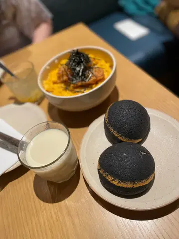 谂唔到食乜,又系试下新野既时候菠菜皮虾饺,菠菜味唔会重,唔讲既话可能根本食唔出,不过包比普通虾饺厚,除此之外同平时食开既虾饺差唔多吉列蚝滑蛋饭,蚝算大,炸皮唔算厚,蚝食落都唔算腥,算系炸得唔错,滑蛋饭就正常发挥仲有杯豆浆,豆浆既质感系比较黏,同埋有一阵豆味,几香,比杯豆浆吸引左竹炭雪山叉烧包,包皮都有少少脆,亦都有流心既效果蒸鸡risotto,完全系一道fusion菜,不过效果唔理想,鸡同饭完全分开,鸡肉煮得太腍,完全唔洗咬,饭都太湿