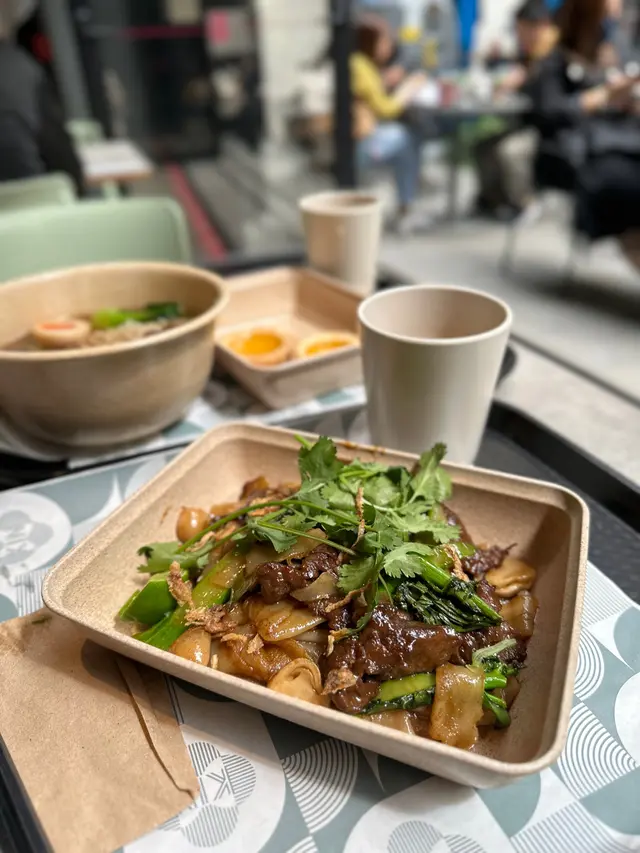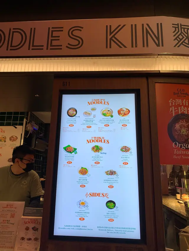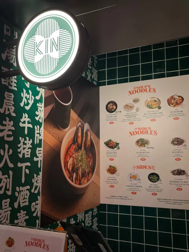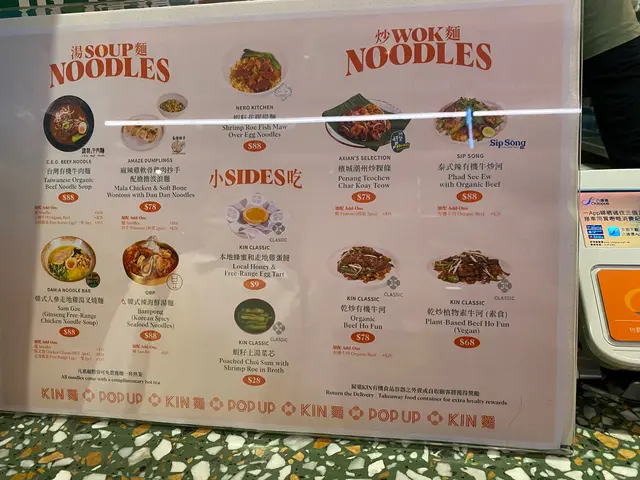 又係中環街市食評。 今次目標係KIN麵, 佢地既燈牌#Noodlelover (Picutre 1). 直接吸引我停步。再睇下佢地既 tea time menu. 非常之國際化: 台式、泰式、西式、 日式。。。(Picture 2).還有side小吃可選擇.(Picture 3).選擇了泰式少金邊粉 配上可持續蝦球 (食材對環境有承擔)