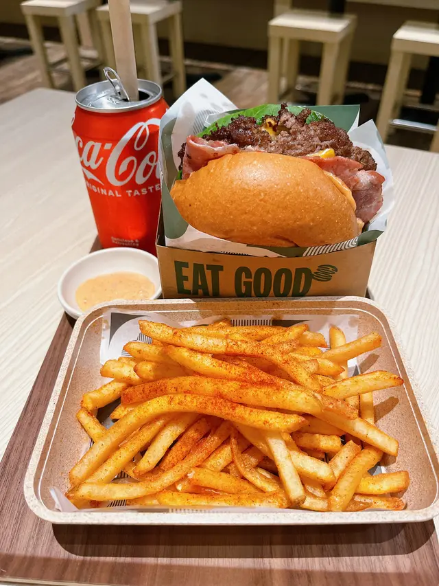 最近發現了公司附近有間新開的漢堡店🍔店內裝潢簡約環境舒適,更設有很多卡位.ᐟ自助形式下單,簡單又方便~⧐ 芝士雙層脆邊牛肉漢堡 HK$78 ⧏點了雙層牛肉的的BLT,賣相好吸引.ᐟ生菜和蕃茄都很新鮮,牛肉很Juicy♡這個漢堡與蛋沙律三文治比較起來性價比很高~⧐ 煙肉芝士薯條 HK$38 ⧏這裡的薯條是用了幼薯條,有點小失望🍟而且份量也不太多,但芝士倒是很濃厚,算是勉強對得起這個價錢,不過不失吧.ᐟ⧐ 蛋沙律三文治 HK$68 ⧏蛋沙律三文治賣相不錯,值得打卡🥪但溏心蛋不是味玉,沒有調味有點單調...味道沒有有特別,這個價錢不太抵食~…查看更多