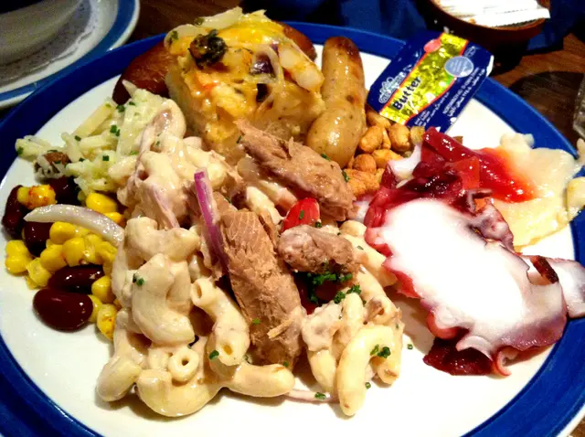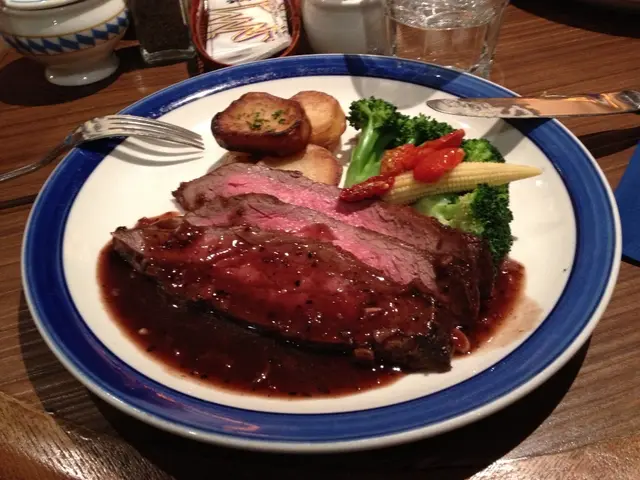 午餐set由$90-115不等,包咗個任食頭一盤同沙律,其實淨食頭盤都夠飽,哈哈任食頭盤有沙律啦,有啲泰式嘅,有生果,羅馬生菜嗰啲,推介有個蛋批,同埋一個好似法包樣,但係好軟熟,好好味嘅包仔👍湯方面係一個忌廉湯,不過呢個唔係一個普通嘅忌廉湯,係有啤酒味,出奇地match,正!主菜我揀咗慢燒牛扒,女仔嚟講,份量好夠,似燒牛肉,肉味略略少咗啲,不過加埋個汁都唔錯,其實枱上面除咗芥辣之外仲有個甜甜酸酸嘅醬,有芥辣子係入面,夾埋個牛都幾好食😍最後仲有⋯其實食完個牛我已經覺得好飽,仲驚個甜品會好滯,點知,原來個朱古力蛋糕底上面係番石留味mousse啫喱,食完仲覺得好fresh,好味,完美嘅午餐👍…查看更多