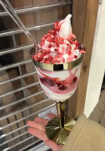 一个口味的雪糕 配搭的略有不同 但只有三个口味...去的那天更只剩两款😱 但不用排队 就总是爽皮😂-1️⃣✨#原味Tiramisu软雪糕 ($43)✨🍦⭐️Mascarpone cheese在底,唧上雪糕、脆碎、可可粉,淋酱有espresso、芝士酱,配起上来就是活生生的Tiramisu变奏版☕️⭐️食味倒是另一回事🤔滑溜不冰的雪糕细致似忌廉,奶香浓密带轻甜。😎表面的可可粉甘苦,但却尝不出咖啡涩香,芝士咸香,跟没下没大两样。😮⭐️中央有饼碎,增添一份层次感,却没有惊人之处~⭐️Mascarpone cheese淡香份量少 但也算颇合衬🧀Rating💁🏻(6.6*/10*)-2️⃣✨#香蕉Tiramisu软雪糕 ($46)✨🍌⭐️淋酱换上香蕉酱,甜腻感更甚了。轻柔香蕉味,少了一份裹腹感,略带清新感。👌🏻Rating💁🏻(6.3*/10*)-⭐️老实说整体表现不俗,只是主打Tiramisu稍欠说服力,也有不少空间添上更出众的特色。🤔