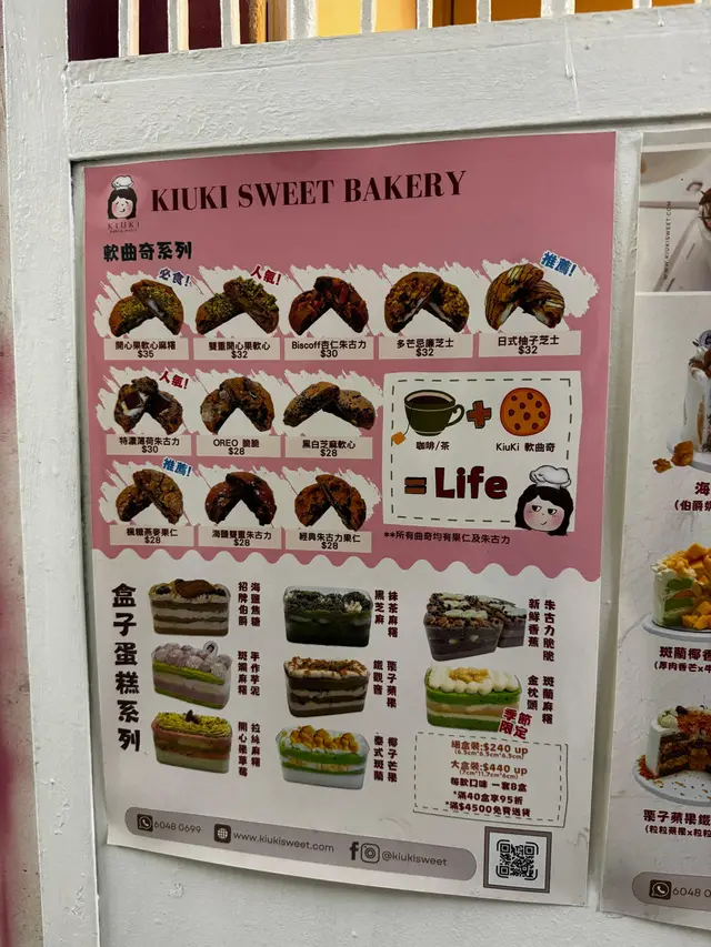 今日去咗觀塘行街,突然間好想買啲邪惡食品返屋企食!就諗起好想食啲曲奇餅!因為前排有同事介紹我上去觀塘啲商業大廈有好多好嘢推介!而今次我就嚟咗呢間叫做kiuki sweet!都係朋友推薦我先識搵到過黎!睇返佢社交平台原來都有整蛋糕同埋甜品盒子!今次我就訂咗佢六塊曲奇,揀左三隻味!分別有開心果軟心曲奇 海鹽雙重朱古力同埋杏仁朱古力!佢呢度仲好好,可以冷藏曲奇,軟心曲奇可以放兩日,其他最多仲可以放到七日!可以慢慢食!我自己覺得個軟心開心果曲奇真係幾好食,開心果味好突出!外脆內軟!啱晒我口味另外杏仁朱古力曲奇,仲有半塊lotus塊係上面,真係夠晒邪惡!之後我老公就最鍾意食海鹽雙重朱古力,因為佢係一個朱古力控!佢覺得呢個朱古力曲奇一啲都唔甜,應該係用黑朱古力嚟整!試咗曲奇之後我真係好有興趣訂佢啲蛋糕嚟食!啲賣相都覺得好正!下次有朋友生日,一定要搵佢訂!…查看更多