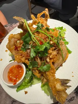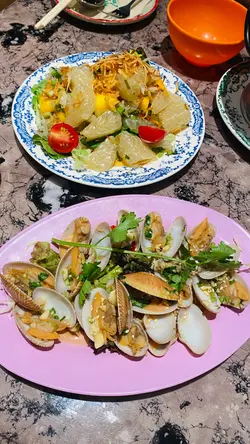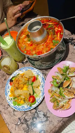 今日终于打卡到间超出色嘅泰国菜!重点系,佢竟然系连续三年攞到米芝莲必比登推介Restoran Saya姊妹店,未食就已经好期待!餐厅环境真系冇得弹~空间又开扬又阔落,设计仲好新颖,仲有个无敌大海景!坐低食嘢嘅时候,一边食,一边望住海景,成个人都放松晒!食物价钱亲民!晚上八点后入座,所有海鲜都有七折!想平嘢食出高质感,拣呢个时间去就最啱!• 鱼露金不换浸花甲 $98超级推介!📣 花甲处理得好干净,一粒沙都冇,咬落去鲜甜又爽口,配埋餐厅特调嘅酱汁,超级开胃,惹味又唔会过咸,味道拿捏得啱啱好!• 煎香草比目鱼配香茅椰子汤 $158呢款真系惊喜满满!鱼扒煎到外层香脆,入面又够嫩滑,放喺香茅椰子汤上面,吸晒汤嘅椰香。椰子汤仲好特别,有少少冬阴公嘅香味,但又带住椰汁嘅清甜,同鱼扒真系超夹!• 咖喱蟹汁炒虾 $208唔太食辣嘅朋友,呢款一定要点!咖喱汁香浓带住淡淡嘅甜味,完全唔会太辣。大虾炸得好干身,咬落去外脆内嫩,冇半点油腻感,蘸埋咖喱汁食,正!👍• 虎虾炒金边粉 $128配料好灵活,唔想食虎虾仲可以拣海鲜,好体贴!金边粉炒得干身,唔会好油,每条粉都吸晒酱汁,味道唔会太酸太咸,口感又够弹,超好食!• 沙嗲鸡串配烤多士 $48/2串呢个价钱真系抵到烂!好耐冇食过咁正嘅沙嗲串嘞,沙嗲汁味道好香,又唔会过咸,鸡肉嫩滑,配埋脆卜卜嘅烤多士,点可以唔比满分丫!😍• 芒果糯米饭 $68芒果糯米饭系泰菜必选甜品,芒果甜到入心,完全系泰国本土芒果嘅味道。糯米饭粒粒分明,烟靭得嚟又有咬口,配埋椰汁,椰香同芒果香混埋一齐,简直系绝配!整体嚟讲,今次呢餐非常满意!从环境到服务,再到每一款菜式,都冇得挑剔,想食高质泰菜嘅朋友,快啲约埋屋企人朋友去试下啦,唔会失望㗎!👍…查看更多