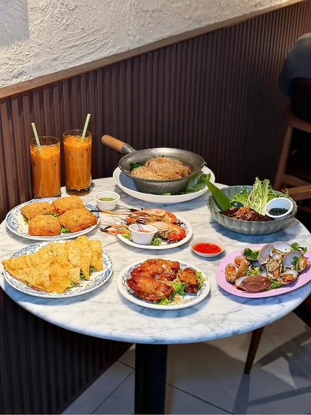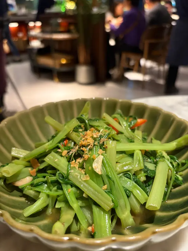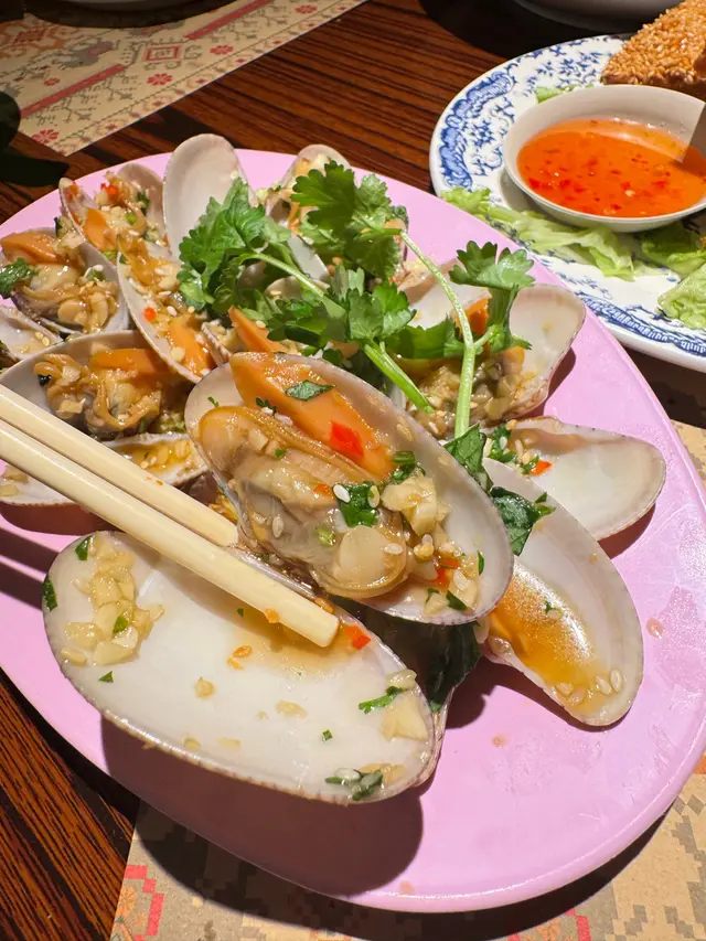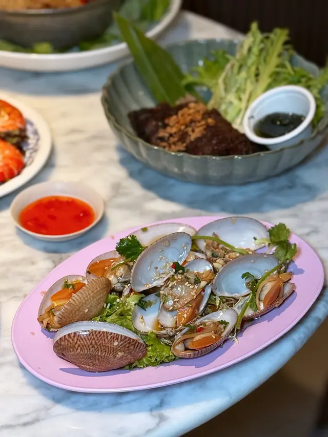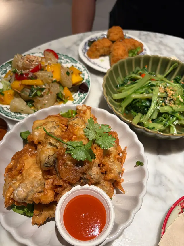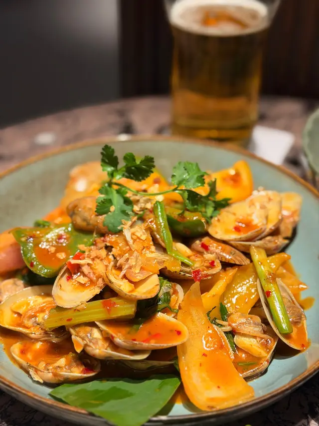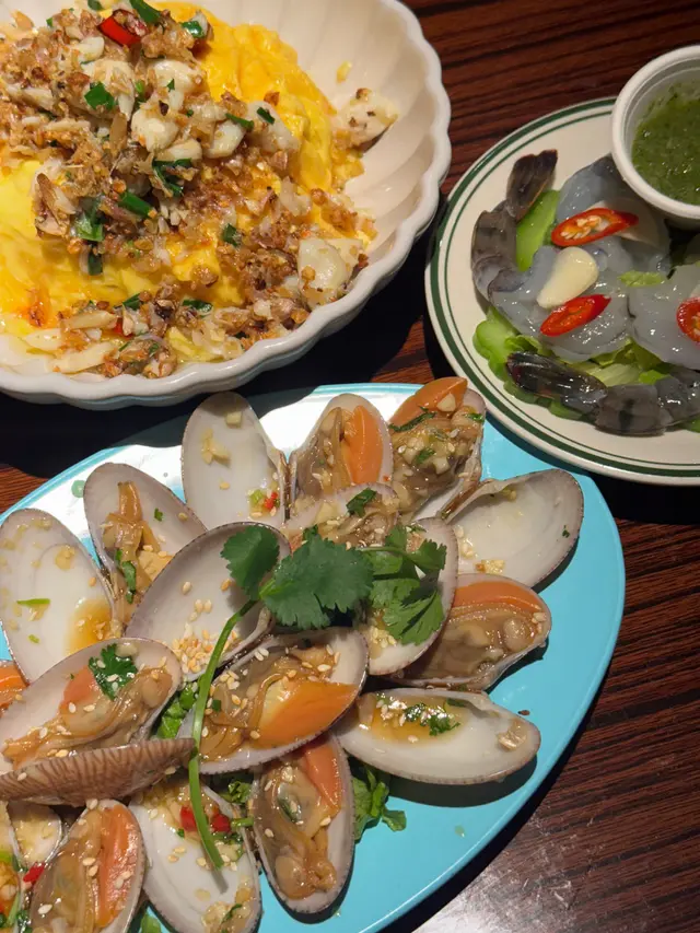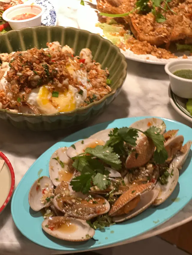 原來係荃灣海之戀商場入面一間好有人氣、價錢算親民嘅泰國菜館,主打有鑊氣嘅泰式同中菜 fusion 小炒。有大玻璃坐窗邊成晚氣氛好chill。 出菜都幾快👍🏻自助落order食咗以下🤗飛天炒通菜蝦醬味香通菜爽有鑊氣,好正😊椒鹽九肚魚天婦羅九肚魚勁大條又多肉,炸到似天婦羅咁酥脆,再灑椒鹽,外皮香口令人回味😍魚露金不換浸花甲用大隻花甲王,肉厚爽口,魚露帶出海鮮鮮味,令人開胃🤤仲有羅勒香氣。蒜炒蟹肉滑蛋飯呢個係店內招牌爆蒜蟹肉蛋飯系列,蟹肉份量足、鐘意食蒜香一定超愛😊滑蛋炒得嫩滑唔老,整體好惹味又有鑊氣,覺得好滿足。 炭燒豬頸肉上枱熱辣辣又大塊,每一片都好均勻,烤肉外層脆脆地香口😍軟硬適中,點埋個Sauce一流👍🏻飲品配搭凍泰式奶茶茶味同奶味都幾濃,絕對唔怕甜啱曬重口味嘅泰菜,飲一啖可以即刻降火解辣。 熱香茅菊花茶:暖笠笠又有香茅同菊花清香,可以幫手去油舒緩喉嚨😗埋單都係幾百蚊就食到咁多野又高質好味😋l…查看更多
