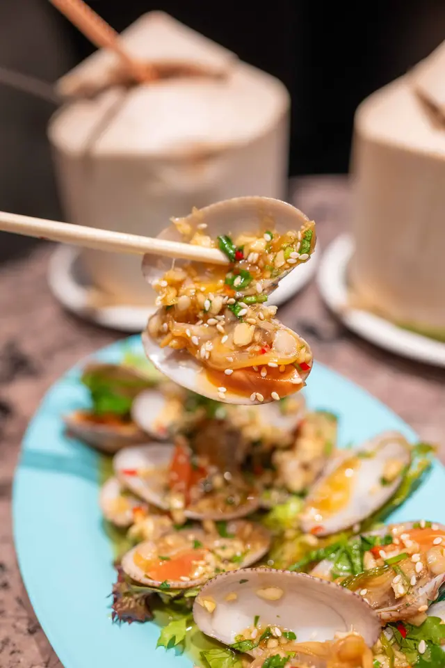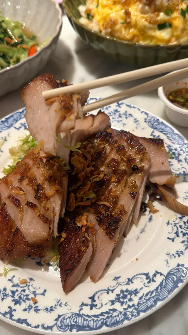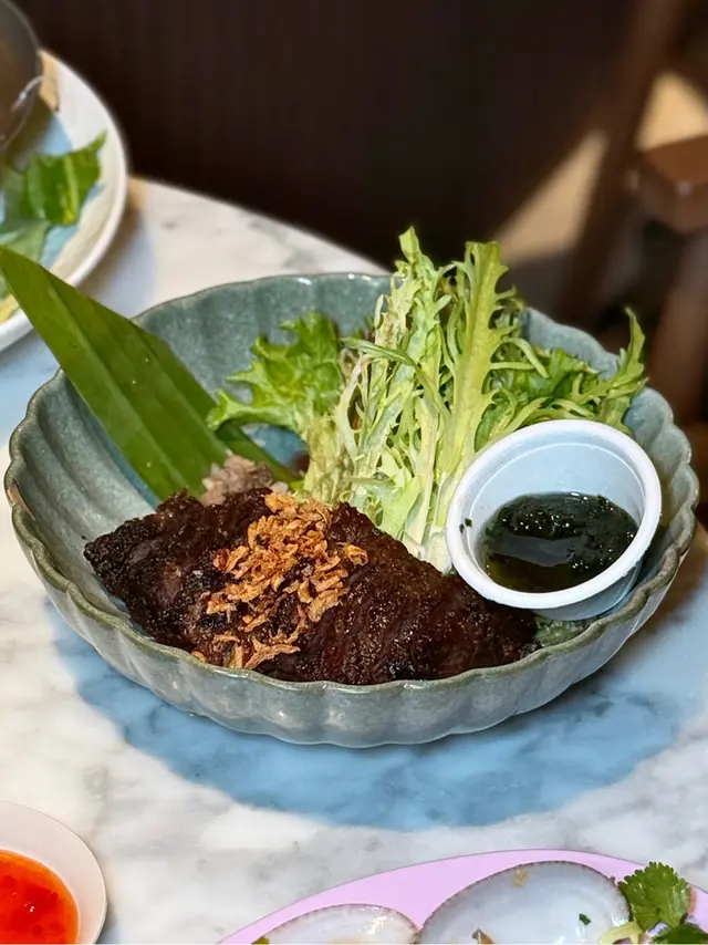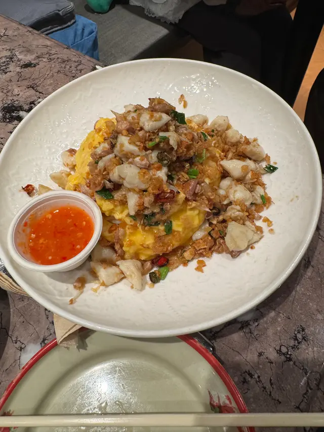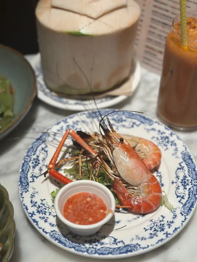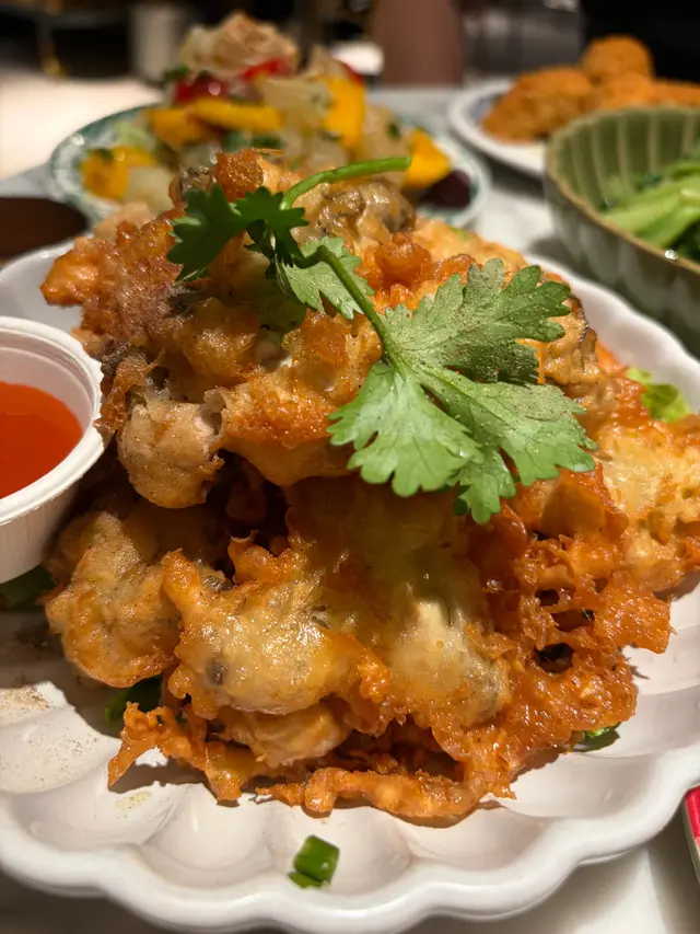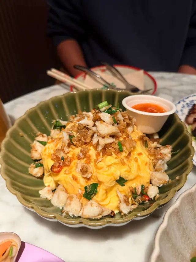 原來係荃灣海之戀商場入面一間好有人氣、價錢算親民嘅泰國菜館,主打有鑊氣嘅泰式同中菜 fusion 小炒。有大玻璃坐窗邊成晚氣氛好chill。 出菜都幾快👍🏻自助落order食咗以下🤗飛天炒通菜蝦醬味香通菜爽有鑊氣,好正😊椒鹽九肚魚天婦羅九肚魚勁大條又多肉,炸到似天婦羅咁酥脆,再灑椒鹽,外皮香口令人回味😍魚露金不換浸花甲用大隻花甲王,肉厚爽口,魚露帶出海鮮鮮味,令人開胃🤤仲有羅勒香氣。蒜炒蟹肉滑蛋飯呢個係店內招牌爆蒜蟹肉蛋飯系列,蟹肉份量足、鐘意食蒜香一定超愛😊滑蛋炒得嫩滑唔老,整體好惹味又有鑊氣,覺得好滿足。 炭燒豬頸肉上枱熱辣辣又大塊,每一片都好均勻,烤肉外層脆脆地香口😍軟硬適中,點埋個Sauce一流👍🏻飲品配搭凍泰式奶茶茶味同奶味都幾濃,絕對唔怕甜啱曬重口味嘅泰菜,飲一啖可以即刻降火解辣。 熱香茅菊花茶:暖笠笠又有香茅同菊花清香,可以幫手去油舒緩喉嚨😗埋單都係幾百蚊就食到咁多野又高質好味😋l…查看更多