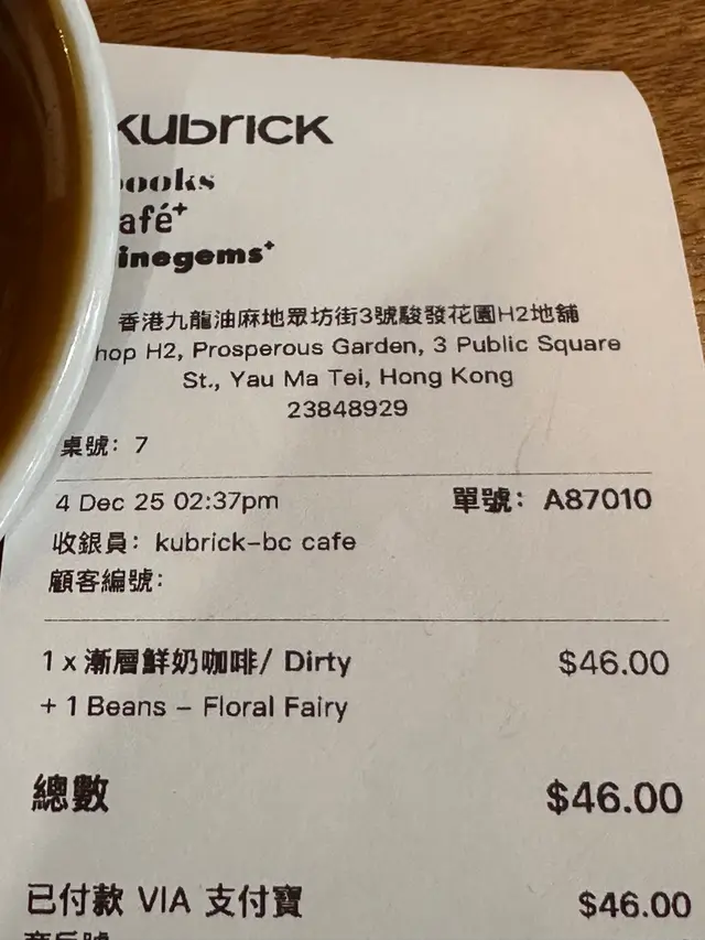 返工放饭遇著下雨,决定唔去咁远去附近嘅西餐厅食吓Hea吓,仲记得上次都系呢度附近返工,见到百老汇电影中心地下有间西餐厅好似唔错,于是今日就去呢度啦,原来呢间就系见到好多人推介的Kubrick!Kubrick 系一间超级舒适的Cafe,围绕四周系木枱木椅,与书本一齐在同一个空间,cafe的中间有张长枱,令小妹联想到哈利波特𠮶种🤭,长枱上仲有一瓶好美丽的Lego花花😍即刻喺𠮶度霸位先🤭午市几好没有加一,但系有限时90分钟,如果过咗时间要再消费先至可以继续坐多阵😏Kubrick午餐包餐汤或沙律及一杯饮品。小妹因为突然之间好想食牛扒,于是决定要香煎纽西兰肉眼配烧汁,选择了餐汤及Flat White。餐汤系南瓜忌廉汤;肉眼话五成熟,上碟后有少少偏熟有啲难咬,但牛味好香👍🏻;底下啲配菜是彩色蔬菜,用牛油煎西兰花、煎过的车厘茄超甜、翠玉瓜四季豆爽脆、红萝卜条软腍😋最尾仲要多件纽约芝士蛋糕😁因为见仲有时间出边又落雨,坐多阵先再离开~成份午餐先来餐汤再来的是Flat White🥹无谂到咖啡居然系主食前就嚟,因为小妹习惯食晒野先饮野,当食完份牛扒🥩杯咖啡已经唔热🥲,下次要讲后上先得😚…查看更多