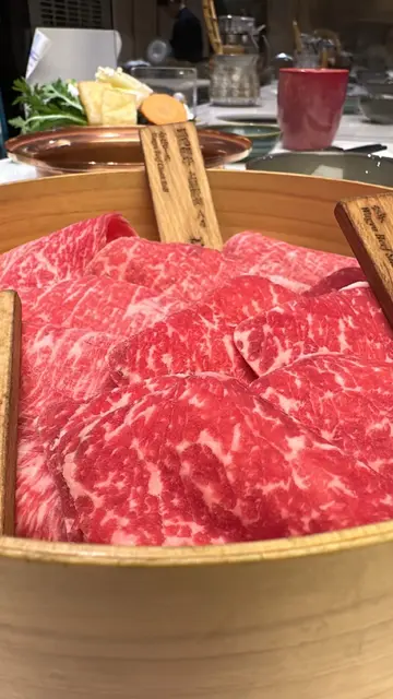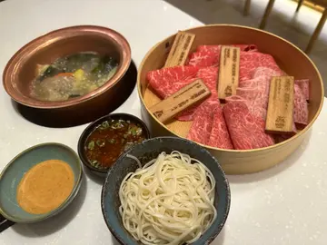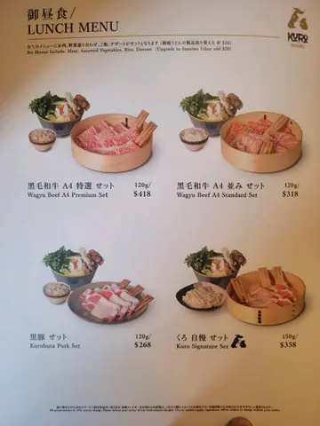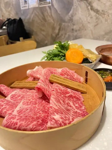 首先,侍应同师傅系尽左力,有礼貌response。食物摆盘系同menu一样。但系我地叫左两个A4和牛餐,一个鹿儿岛猪肉餐。每个餐得3样嘢,一盘配菜,一碟肉(量多),一个饭或者乌冬。无饮品,得茶同水侍应会不断fill。三个人埋单大概1600,即系每人超过$500。汤底据称系昆布清汤,不过系无色无味无昆布,连一粒葱都无。筷子一人一对胶筷子,无另外木筷子夹生肉。菜盘有四分一旧粟米,几片海带,一少束粉丝,一片红萝白,两薄片唐扬,三分一束金菇,少少菜。分量好少。肉,话系A4和牛,可能我地唔识食,但真系食唔出。酱,一款系麻胡酱,姐系屋企雪柜个款。同埋柚子鼓油加少少萝白同蒽,完。500几一个人真系唔值得。…查看更多