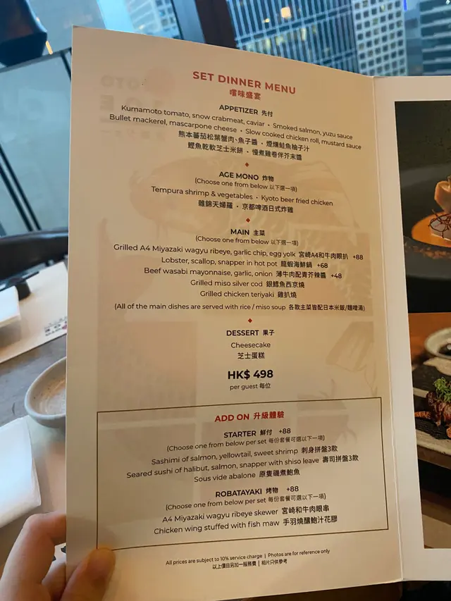 Kyoto Joe (中环) 网址: https://s.openrice.com/QrLS0q0eA00 地址: 香港中環蘭桂坊德己立街30-36號加州大廈23樓 电话: +852 28046800