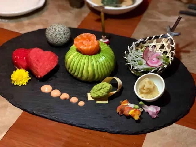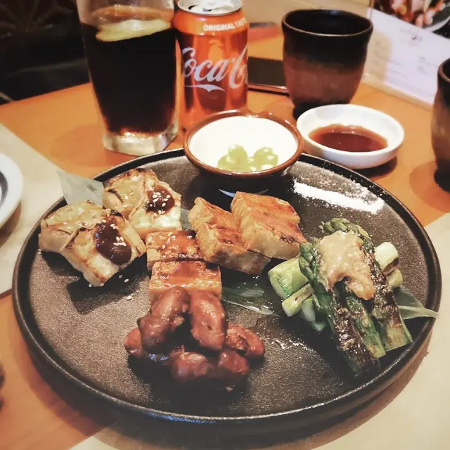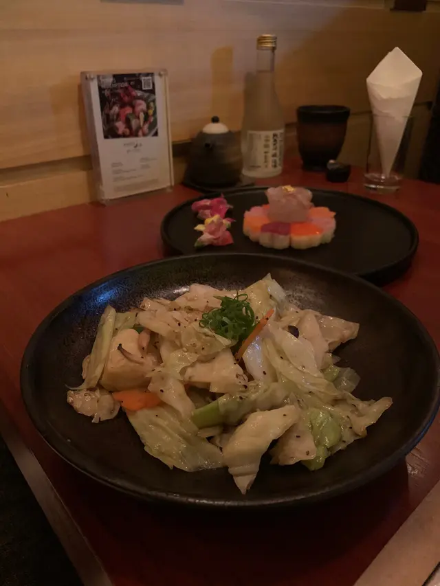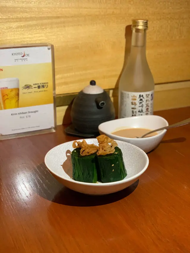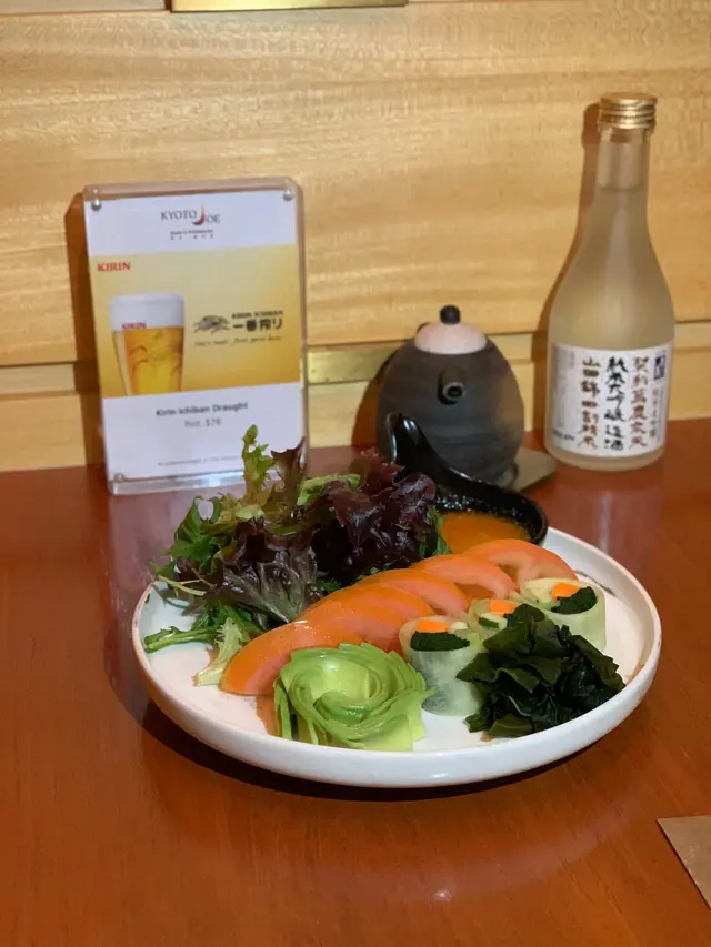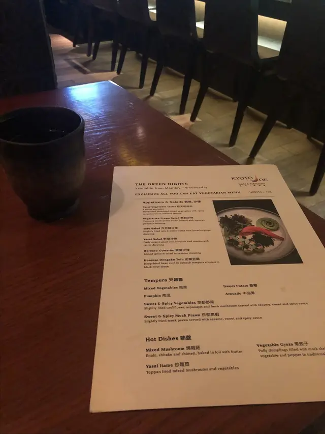 走入Kyoto Joe,一陣愜意滲透心扉,小桌擺放得整整齊齊,透出一股悠閒氣氛🌿。我迫不及待開始The Green Nights的純素之旅,每一道菜都充滿心思。先嚟個綠天使他他,擺盤精緻得好似藝術品,一啖落去辣勁滲透味蕾,而隱藏喺底層嘅脆腐皮豐富咗整體口感,食得我心花怒放🌶️。繼續嘅野菜沙律清新得嚟又帶啲牛油果嘅滑潤,方塊個紅蘿蔔汁簡直係點睛之筆。啖辣味啦啦卷,Jalapeño青辣椒嘅驚喜一觸即發,刺激過山車咁翻滾喺口中,其實叫埋晒尊敬。雜錦燒物組合每一款都有佢獨特風味,燒豆腐綿密,青椒清新,又甜又香嘅甜薯係我嘅心水之選。至於天婦羅,輕盈嘅炸漿將每塊素菜裹成一件件食藝術,配合點點芝麻嘅香氣,攞酸甜醬蘸咗,味道精彩得唔得了。朋友生日,吞拿魚蛋糕造型吸引,質感滑潤,實乃畫龍點睛之作。哈,食到最後,輕輕嘆口氣,滿足!今晚嘅素食之旅確實是一場味覺同視覺嘅盛宴,由頭到尾食得幸福滿滿😊。…查看更多