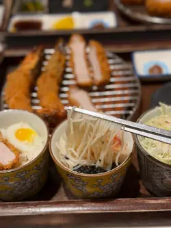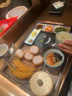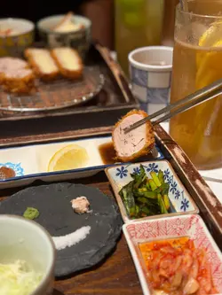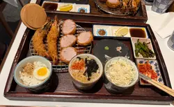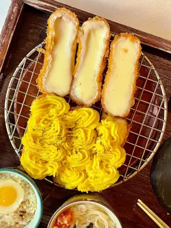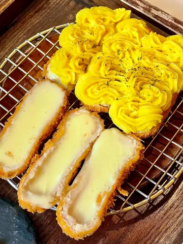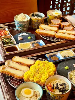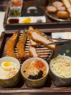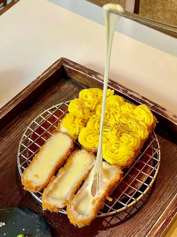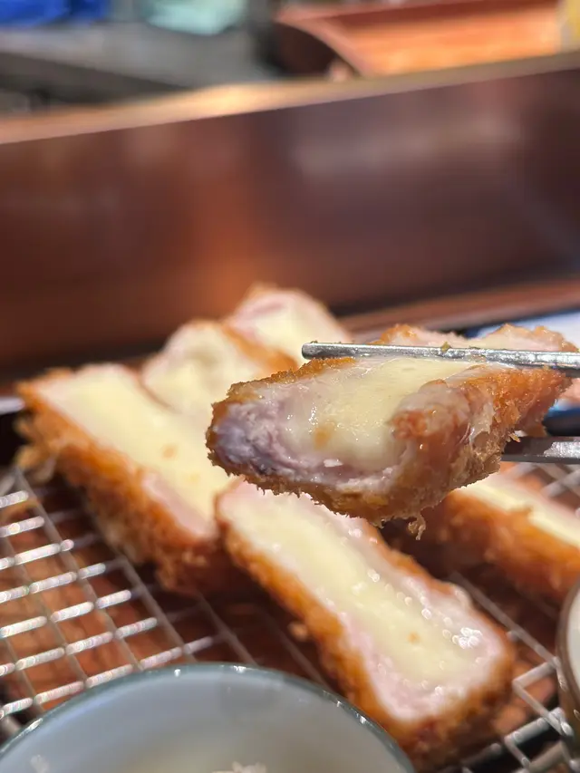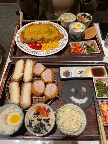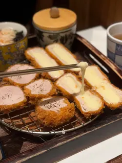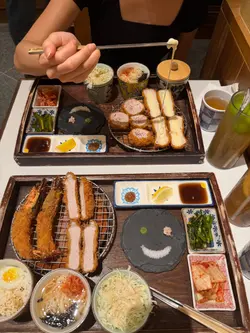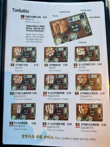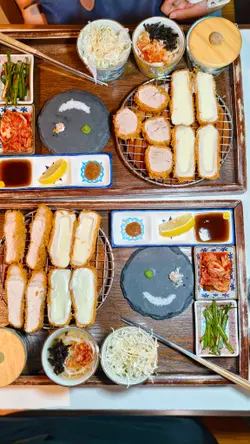 the hype is real for this viral tonkatsu spot! indulged in the🧀pork tenderloin & cheese with an epic cheese pull and the delicious 🍤pork loin & prawn. the korean pork was lean-ish but still tender. with unlimited noodles+rice+salad and amazing dips like truffle salt & sweet mustard, it's a must-try. don't miss their super refreshing 🥤fruit ades to complete the meal:)终于同朋友试咗呢间前排喺ig好hit嘅韩式吉烈猪扒店!点了🧀芝士猪柳和🍤猪排炸虾set,拉丝超夸张,钟意芝士一定会想试。menu话佢哋用韩国新鲜猪肉,虽然偏瘦,但依然够嫩滑。加上任添嘅面、饭同沙律,仲有松露盐同甜芥末等特色酱料,真心推介!最后记得饮埋杯超清爽嘅🥤水果梳打!…查看更多