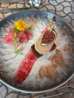 唔係剩係紀念日先要食好d㗎~平時都要為自己增添一點儀式感💖之前響附近出event發現原來黄金泳灘有間咁靚嘅餐廳😳今次就嚟試試佢~餐廳環境一流,樓底高有落地玻璃,下午日落應該仲有feel✨職員熱情有禮good good👍🏻唔想諗直接叫個Set Dinner,好似好豐富🤤開始先welcome drink,有紅酒白酒揀,不過我揀咗Fruit Punch😆~💜法國迷你海鮮拼盤有法國No.1生蠔/法國深海龍蝦仔/鮮扇貝~海鮮新鮮鮮甜,食完即刻開胃👍🏻~💜西班牙伊比利亞48個月風乾火腿伴金瓜另一冷盤開胃菜~乾火腿嘅咸配上甜甜嘅金瓜好衝擊但又好夾,好味👍🏻~💜龍蝦濃湯大推介,濃味得嚟唔會好heavy有層次,唔會好似坊間一般得個重咸味~💜意大利白松露忌廉湯呢個都大推,好creamy加上淡淡嘅白松露香好想encore好好味~💜香煎深海野生格陵蘭比目魚扒配香草白酒忌廉汁最鍾意魚扒冇骨啖啖肉~滿足爽快🤤魚扒厚實但爽口鮮味,魚控必叫!!!!💜烤澳洲M4和牛肉眼扒配紅酒燒汁熟成度煎得啱啱好~食得出食材肉質真係A+++!!肉同脂肪比例好好唔韌,食肉獸一定愛爆👍🏻~😆食主菜時唔好漏咗側邊配菜,都係心機之作超有驚喜🫵🏻~💜歐陸甜品甜品係心太軟同芝士蛋糕~心太軟超級好食,keep住暖暖地真係做到流心效果,外皮都焗到脆口好食👍🏻~…查看更多