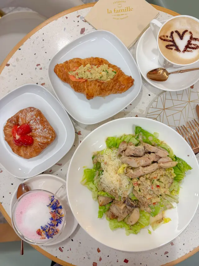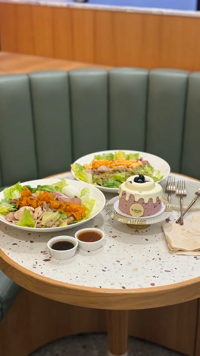 好久沒去 La Famille 吃蛋糕了尖沙咀海港城分店其實是我愛店位於商店和電梯大堂中間的 kiosk明亮簡約又寬敞雅致的沙發座兩邊角落的花花桌子原來已經沒有了除了提供各款招牌戚風蛋糕海港城分店最近還推出限定餐點包括 pastry 輕食跟自選沙律為不同需要的客人提供更多選擇𓋪 自選沙律 [ 黃金甜粟 | 日本蛋沙律 | 美國提子朝 | 黃桃 | 焙煎胡麻沙律醬 | 羅馬生菜 ]𓋪 玫瑰荔枝𓋪 Earl Grey Tea自選沙律可從逾 25 款配料中選 4 款自由配搭沙律菜跟醬汁 價錢從 $69 起 是新潮的「車仔沙律」想要滿滿肉類 可選煙肉 雞肉 豬手想吃得素點 像我一樣可以點玉米 提子乾等等加上從一開始就看中的綿密蛋沙律配新鮮爽脆的羅馬生菜 整體清新 口感豐富不來白不來 當然要點蛋糕才能罷休!戚風蛋糕一如既往的鬆軟濕潤 淡淡荔枝香氣甜度不高 適合喜歡清新水果口味的朋友size 也是一個人 k.o. 很剛好加上清香伯爵茶 溫熱暖在心中 感覺到餐廳們最近都很勇於嘗試新挑戰沙律這樣的新念頭真的很支持尤其為了小鳥胃女子開拓一個新的念頭 …查看更多