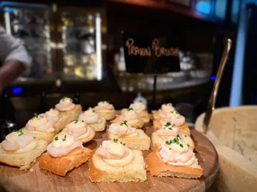 同一个好耐冇见嘅朋友聚会,拣咗公司附近嘅La Favorita。今次特别啲,带埋枝酒去,开瓶费$250。首先呢度系有tap water,唔一定要硬食Still/Sparkling。其次嘅系佢预先上嘅面包,质素唔错,份量够多,同佢意大利嘅橄榄同黑醋亦都算夹。Beef Tartare $198呢度嘅名菜之一。加上黑松露嘅牛肉他他,再加上佢嘅特制忌廉酱汁。一捞埋,其实味道同质感上都已经到达巅峰,系嚟呢度必食嘅菜式。Il Gran Tagliere $248全晚最抵食嘅菜式。呢个由36个月Parma ham,salami等组成嘅超级拼盘。相当巨型,ham嘅质素就正常啦。不过我觉得如果有啲芝士会平衡啲。Cheese Wheel Al Tartufo $338同样喺呢度嘅名菜。店员会将芝士轮推出嚟,再将预先整好嘅意粉喺芝士轮度兜几圈,最后加上芝士粉同黑松露而成。首先要赞赏佢嘅系佢嘅意粉,用上短通粉,同呢度嘅酱汁好夹。不过食得多呢个意粉亦都会有少少腻。Grilled Lamb Chops $268一式三件嘅羊架,其实唔算好抵。不过羊架嘅肉质算嫩,好易咬,size就偏细。不过都有啲薯蓉垫住,唔会好寡嘅。其实原本仲谂住叫嘢饮或者甜品,但已经饱晒。…查看更多