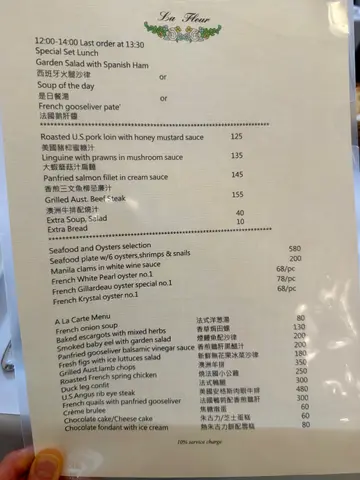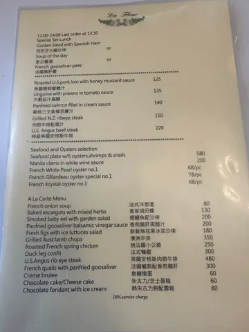 唔系朋友介绍都唔知有间咁好食又抵食嘅法国餐厅星期六中午,想hea 下,去了朋友介绍嘅餐厅食lunch, 因餐厅lunch time 至2点,所以12点去到,一坐低老板(我估)俾杯热水老人家,而我系冻水(可能见我著短袖),但真系好细心😊前菜:面包、蘑菇汤、法国鹅肝酱主食:肉眼牛排、美国猪柳饮品:热柠茶蘑菇汤 - 好浓,粒粒蘑菇碎鹅肝酱 - 都几香,用黎配面包食更好味内眼排 - 好香牛味,好淋美国猪柳 - 超淋真系好值得再去,食物有质素,服务态度超好,下次试晚餐☺️,食正宗法国菜式先Read More