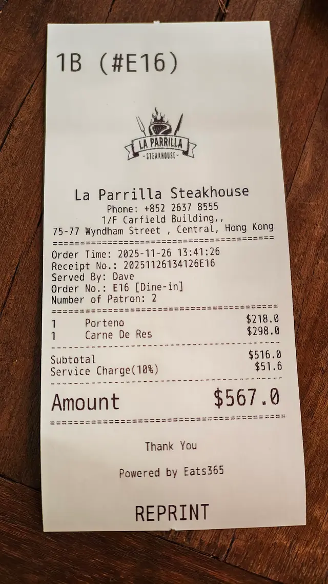 La Parrilla Steakhouse (中环) 网上订位即赚Rice Dollars 网址: https://s.openrice.com/QrLS0hE4B00 地址: 香港中環雲咸街77號嘉兆商業大廈1樓 电话: +852 26378555