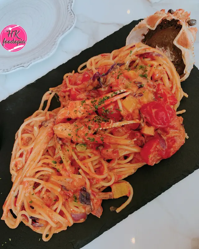 .松葉蟹奶油芝士意粉 $208 [超推👍🏻]Queen Crab Spaghetti in Cheese Cream Sauce我哋係去食lunch,但係冇叫到set lunch,因為喺menu見到呢碟意粉嘅相,覺得好吸引,set lunch又冇,要散叫。不過試過之後,真係散叫都會叫!雖然話係奶油芝士,但賣相似蕃茄芝士,食落都有淡淡地嘅蕃茄味🍅奶油芝士creamy得嚟唔竭("杰”),撈埋蟹膏都唔會膩,同時做到每箸意粉都沾到足夠醬汁,好正🤤雖然得兩隻蟹鉗仔🦀,但係有🧀醬汁同蟹膏,成碟意粉已經好好食!.女皇麻糬窩夫(荔枝麻糬)$158The Queen Waffle (Lychee Mochi)之後就上甜品啦,呢個女皇麻糬窩夫係超推薦!皇冠窩夫模➕靚靚水果擺盤 啱哂打卡po ig!重點係睇得又食得,荔枝麻糬餡味道清新香甜,窩夫又香又煙韌,真係一試愛上,仲有好多唔同嘅水果伴碟,我次次食呢間都要嗌呢個