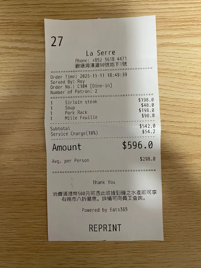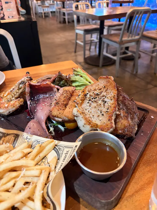 之前喺觀塘海濱散步嘅時候就經常都會經過La Serre依間餐廳成日都見到有人帶住狗狗或者貓貓喺度食嘢,於是今日就到我帶埋屋企六隻貓貓嚟試吓啦La Serre隊友寵物嘅主子嚟講真係好友善,因為帶埋主旨嚟食嘢嘅人會有八折優惠外只要喺度打卡仲會送寵物玩具同埋凍乾!未試過有一間餐廳係為咗寵物做到咁貼心,大贊今次我哋叫咗一份海陸套餐,只能夠講真係一次過滿足晒咁多個願望!套餐入邊包咗一份豬扒,牛扒,燒魷魚,大蝦,鴨胸(平時會係半隻雞)而且仲可以揀一份黑松露薯條或者甜番薯條首先講份量,淨係嗰份薯條都夠我哋兩個人食飽,莫講話入邊嘅肉份份都大大件然後講質素,豬扒油脂香唔會煎到太乾,牛扒剛好煎到五成熟,而且牛肉香味濃大蝦同魷魚都唔會燒到太乾,而且肉質好鮮。鴨胸亦都煮到剛剛好,皮脆肉嫩。另外仲叫咗半份醬香豬仔骨架,肉質腍甜配埋個醬非常之恰到好處。食到咁上下嘅時候,仲有live Band表演,成個氣氛非常chill,一邊仲可以望住觀塘海濱嘅海景。如果想帶埋啲寵物去一個好relax好chill嘅地方,首推La Serre!…查看更多