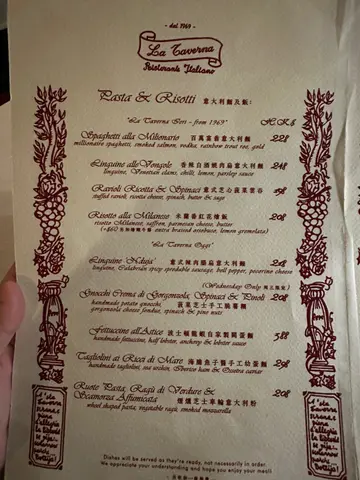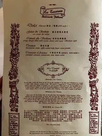 From the moment my wife and I stepped into La Taverna Ristorante Italiano, we were captivated by the warm, inviting ambience that perfectly balances elegance with a cozy, authentic charm. The atmosphere made the dining experience truly special.The service was impeccable - staff there were attentive, knowledgeable, and genuinely friendly, making us feel valued and well taken care of throughout the meal - special thanks to Marco for taking care of us. And the food? Absolutely stunning. Every dish was a masterpiece, beautifully presented and executed with precision. The flavors were rich and authentic, showcasing the chef’s skill and passion for Italian cuisine. It’s rare to find a place where every element, from starters to mains, hits the perfect note.The title of this review isn't an exaggeration. It isn't easy finding a special corner after a long harsh day at my humble company, let alone a getaway that replenishes your mind and soul - La Taverna Ristorante Italiano offers this: an exceptional dining experience that both my wife and I highly recommend. A true gem for anyone seeking delicious food paired with stellar service and an inviting atmosphere in the heart of Hong Kong.…查看更多
