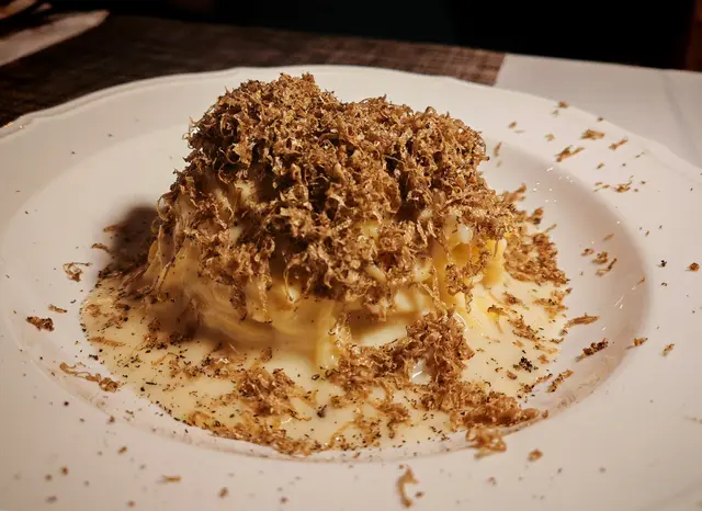 ⧖網上見到呢間餐廳係全港第一間意大利餐廳🇮🇹適逢紀念日,男友就帶咗我去食💕➢ 🍝 海膽魚子醬手工幼蛋麵 $328手工意大利幼蛋麵 | 海膽 | 伊利比亞火腿 | 奧塞特拉魚子醬海膽新鮮可口,醬汁濃郁,手工蛋麵則具有十足的嚼勁,口感極佳🤤上枱時仲有好多汁, 食到一半手工幼蛋麵已經吸曬啲汁😂雖然吸曬啲汁, 但唔影響口感, 一樣好味🤤➢ 🦞 龍蝦手工寬麵 $388手工意大利寛麵 | 新鮮龍蝦(半份) | 鯷魚龍蝦汁龍蝦汁非常濃郁且入味, 感覺添加了番茄,使味道中帶有一絲酸甜的風味🫣➢ 🐟 香煎五香黑鱈魚 $298黑鱈魚 | 洋蔥醬 | 蘆筍 | 香菇鱈魚肉質好滑, 仲要無骨, 啖啖肉, 比想像中驚喜✨➢ 🍮 Tiramisu $98甜度恰到好處,吃完後不會感到膩👍🏻➢ 🍹 Mirtillo Fresco $78Mudled Blueberry | Honey | Soda Water➢ 🍹 Pesca Brezza $78Peach | Cranberry Juice | Apple Juice整體好滿足,但價錢真係偏貴💔特別日子要慶祝先會再去🥺食完上openrice先發現,原來最近轉咗MENU同埋加曬價💔‼️另收加一‼️📍La Taverna (尖沙咀)尖沙咀亞士厘道36-38號地舖…查看更多